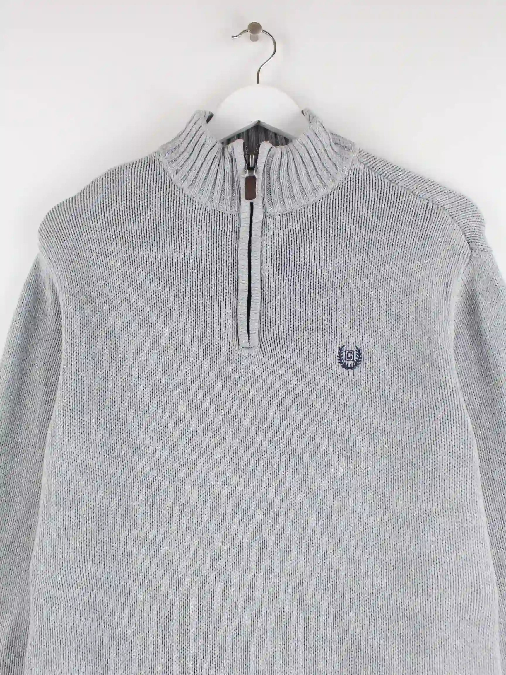 Grauer Pullover mit halbem Reißverschluß von Chaps by Ralph Lauren in Größe M. Er ist aus Baumwolle produziert und in sehr gutem Zustand zu bekommen.