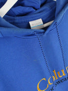 Hoodie des Labels Columbia mit gesticktem Logo in Größe XL. Er ist aus einer Baumwollmischung angefertigt und in Blau im Bestand.