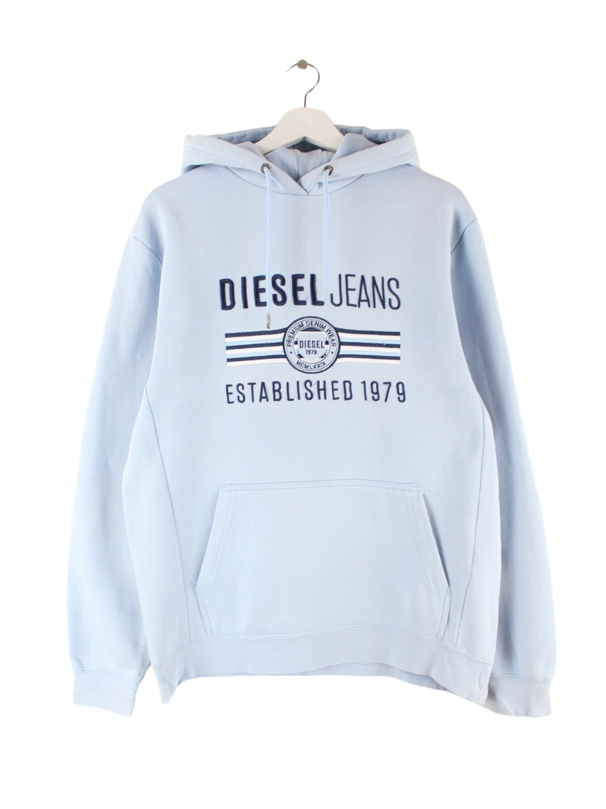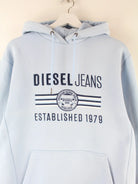 Blauer Hoodie mit Stick der Brand Diesel in Größe L. Er ist aus einer Baumwollmischung gefertigt und in gutem Zustand zu haben.