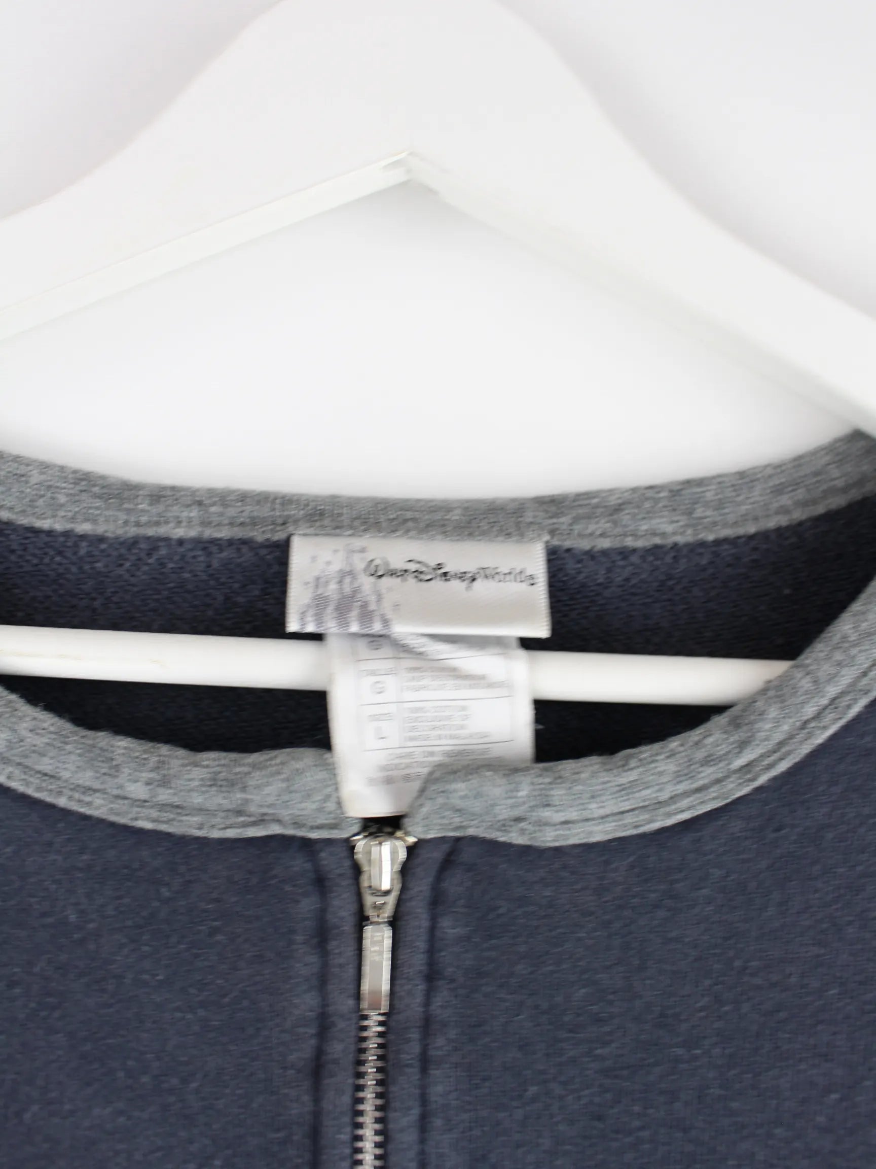 Sweater der Brand Disney mit kurzem Reißverschluß in Größe L. Er ist aus einer Baumwollmischung angefertigt und in Grau vorrätig.