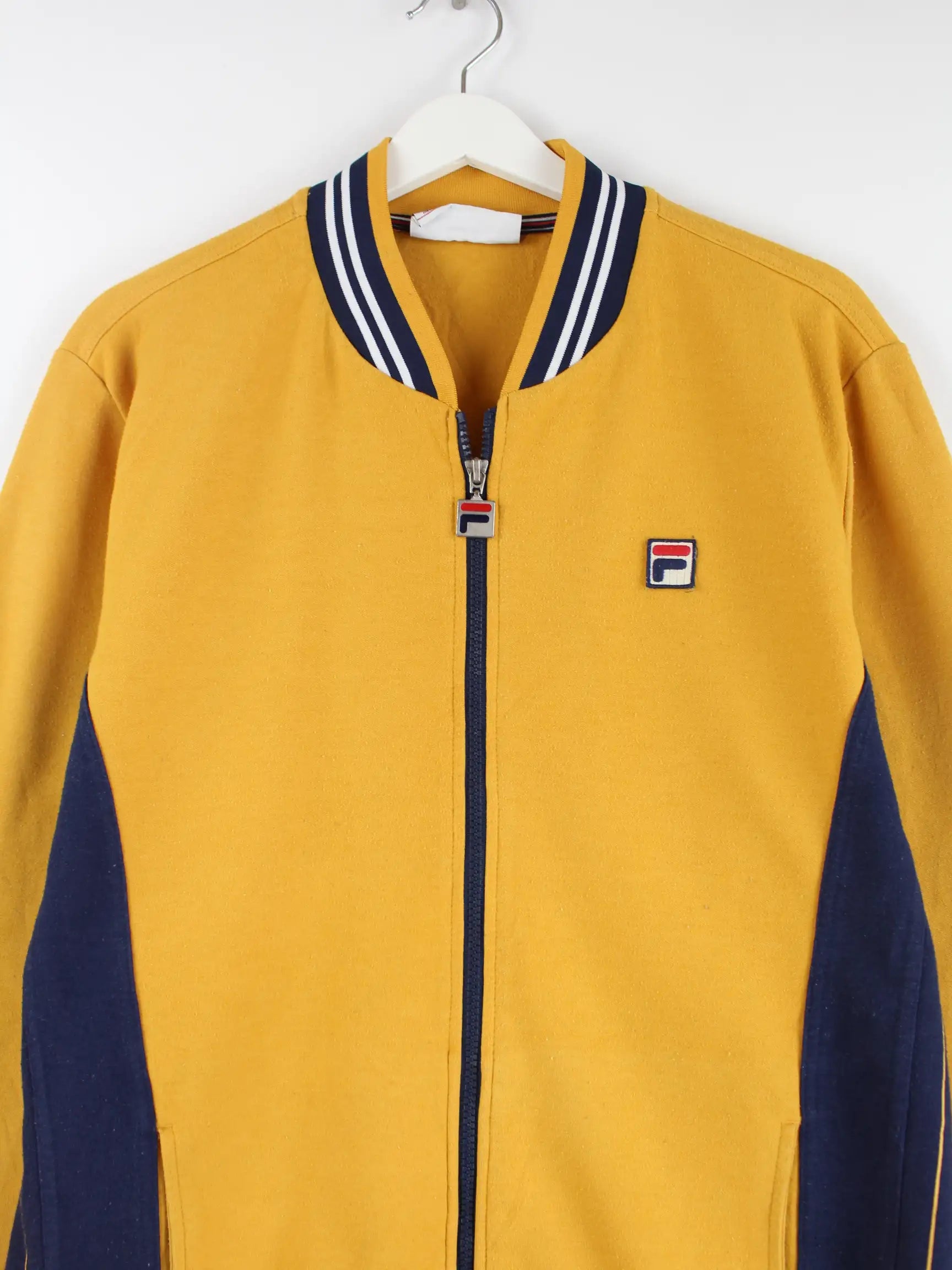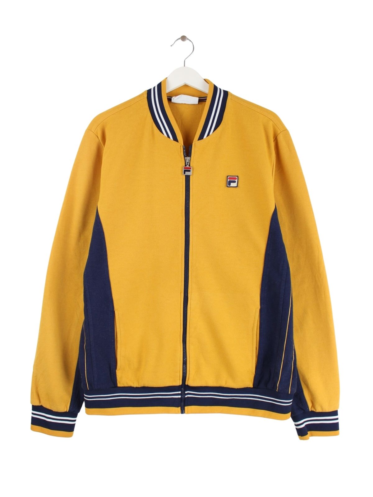 Gelbe Sweatjacke der Marke Fila in Größe XL. Sie ist aus einer Baumwollmischung gefertigt und in gutem Zustand zu haben.