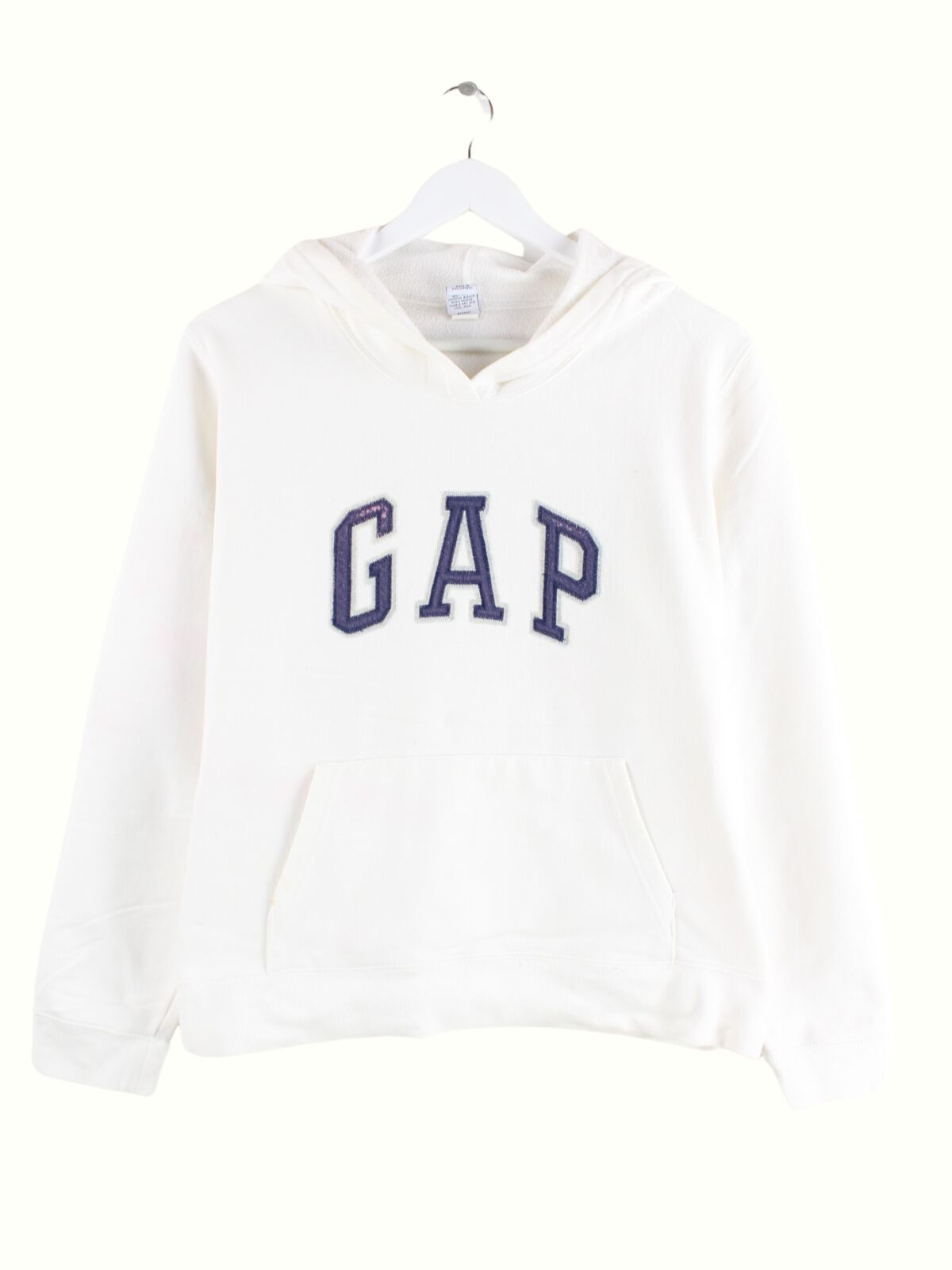 Hoodie aus dem Hause GAP mit Stickereien in Größe L. Er ist aus einer Baumwollmischung produziert und in Weiß im Angebot.