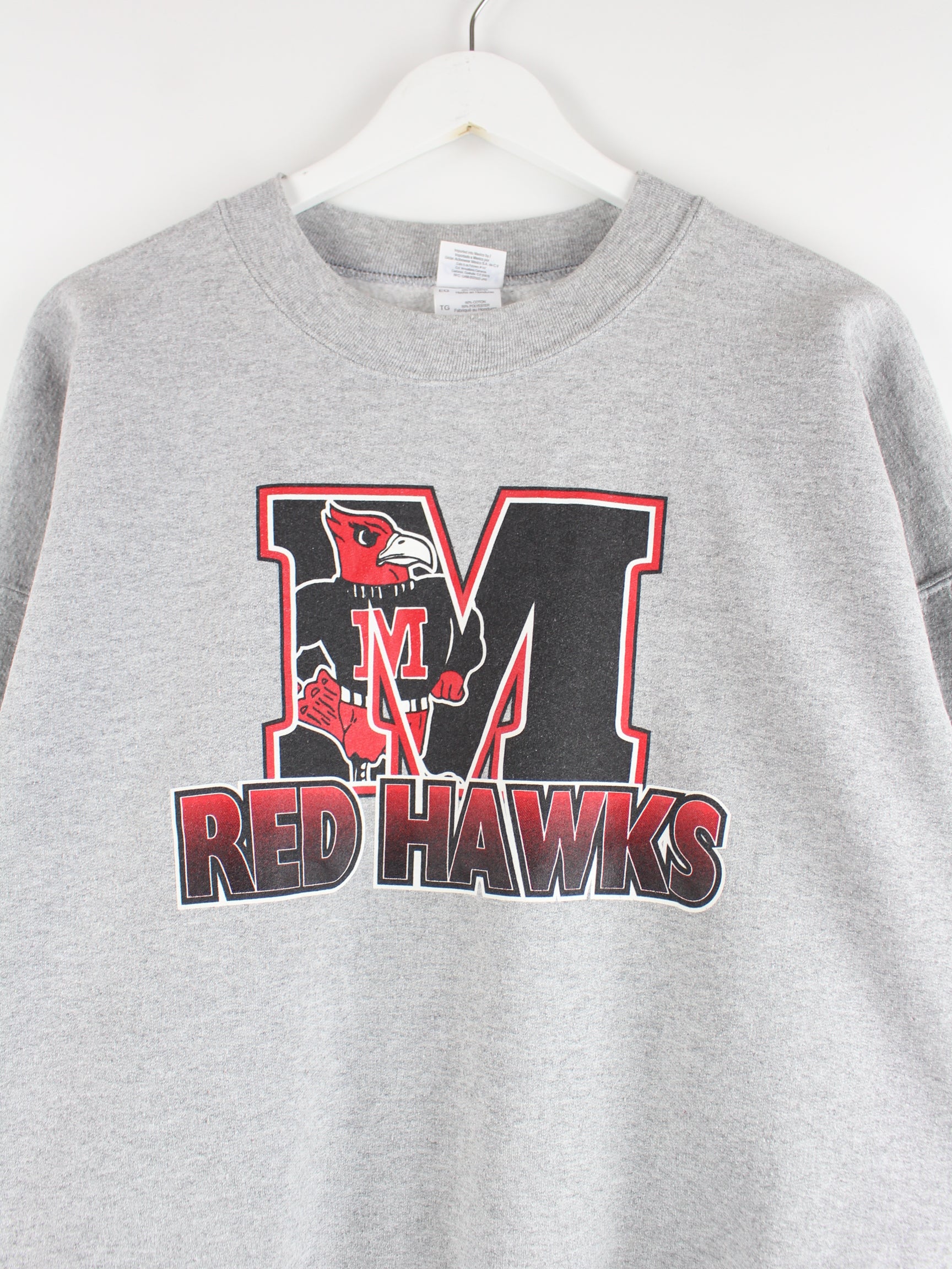 Gildan 00s Red Hawks Print Sweater Grau XL