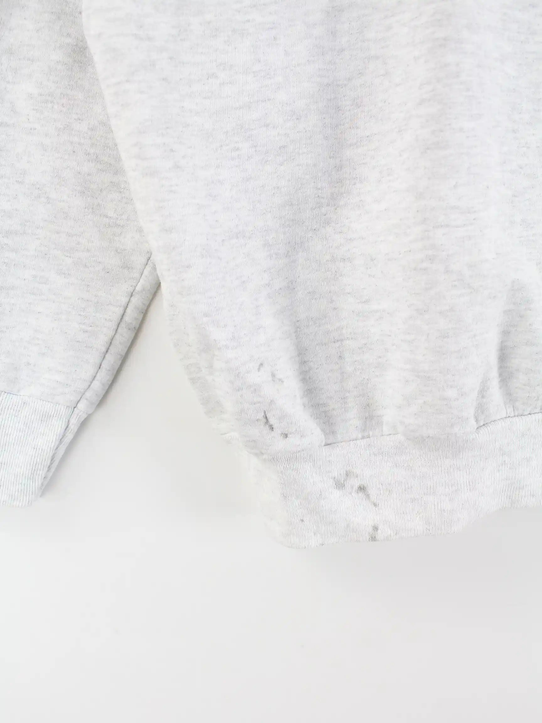 Grauer Sweater vom Label Hanes in Größe L. Er ist aus einer Baumwollmischung produziert. Den Zustand würden wir als 'In Ordnung' bezeichnen (vergl. Bilder).Mit tollem Hockey Print.