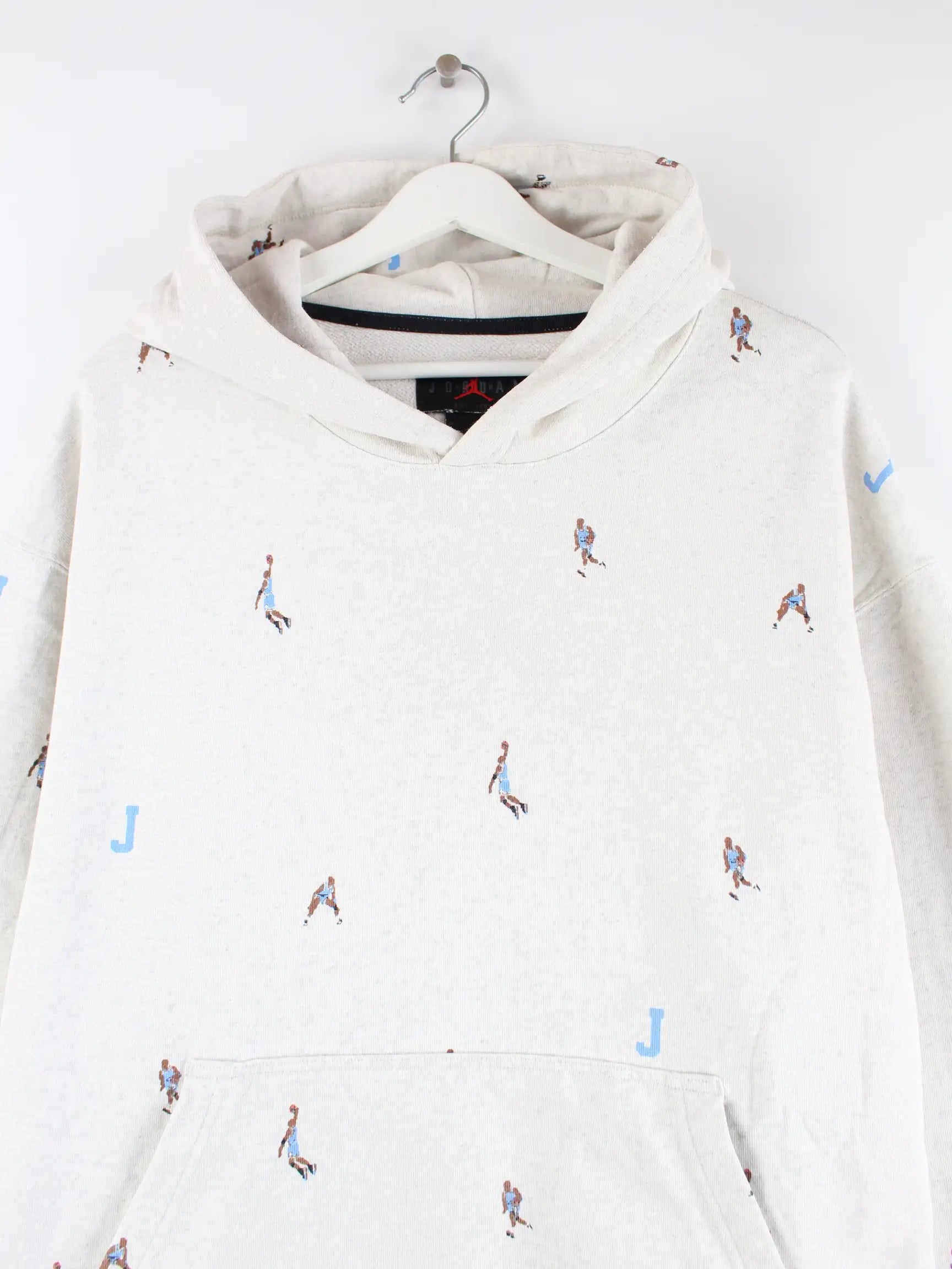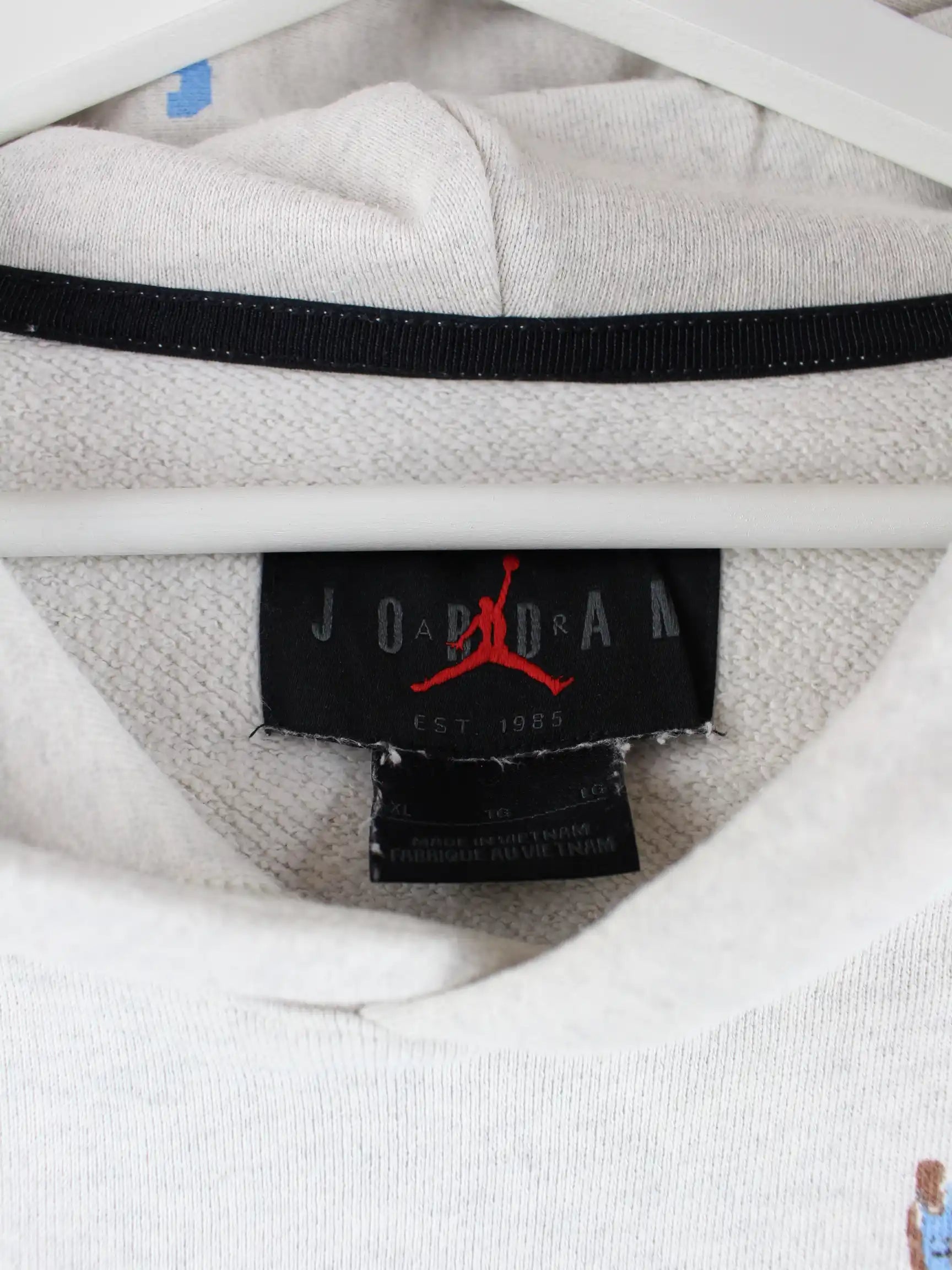 Hoodie der Brand Jordan in Größe XL. Er ist aus einer Baumwollmischung und in Grau im Bestand.