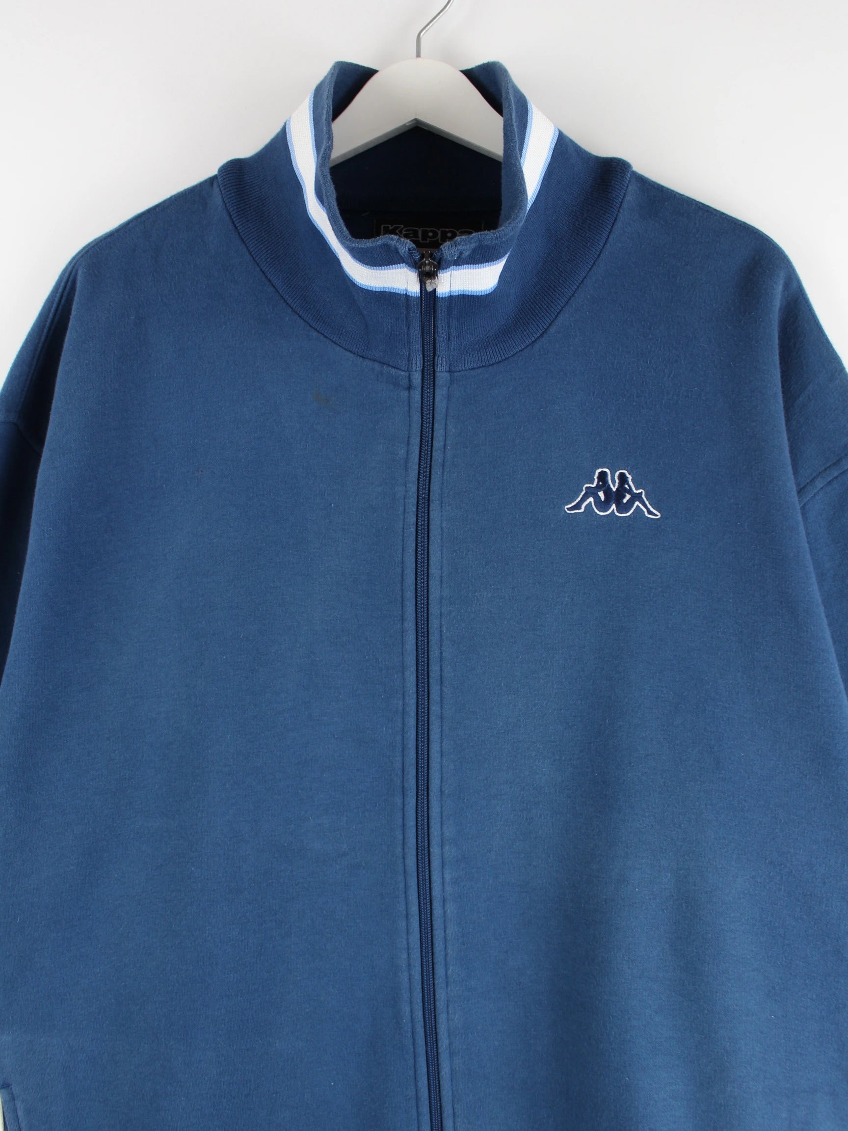 Blaue Sweatjacke vom Label Kappa in Größe 3XL. Sie ist aus einer Baumwollmischung und in gutem Zustand auf Lager.