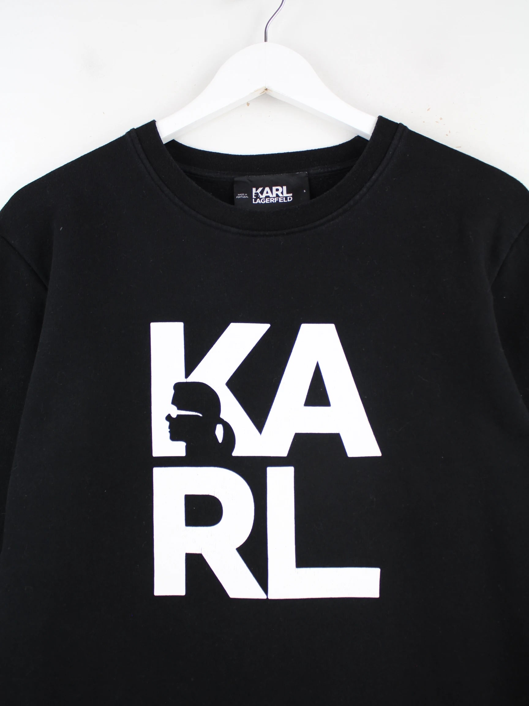Sweater vom Label Karl Lagerfeld in Größe S. Er ist aus einer Baumwollmischung produziert und in Schwarz auf Lager. Mit chiquem Print.