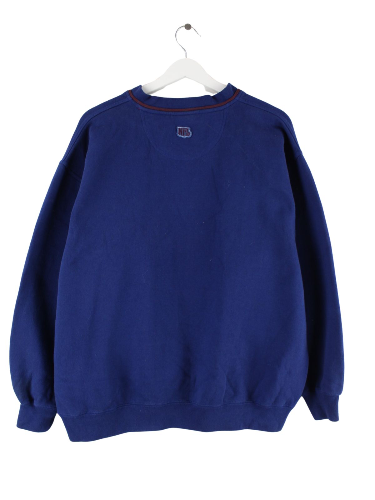 Blauer Sweater mit Stick von NFL in Größe L. Er ist aus einer Baumwollmischung produziert. Den Zustand würden wir als 'In Ordnung' bezeichnen (vergl. Bilder).