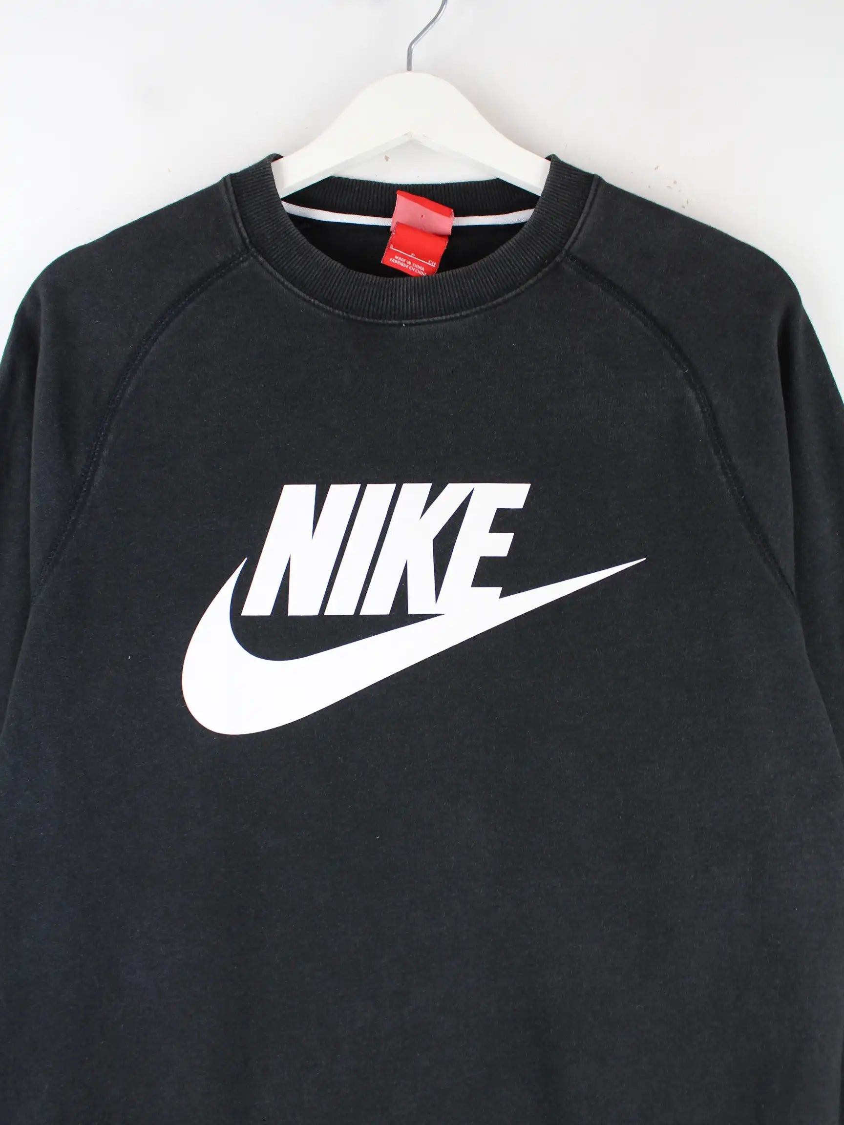 Sweater vom Label Nike in Größe S. Er ist aus einer Baumwollmischung produziert und in Schwarz im Angebot. Mit schönem Print.