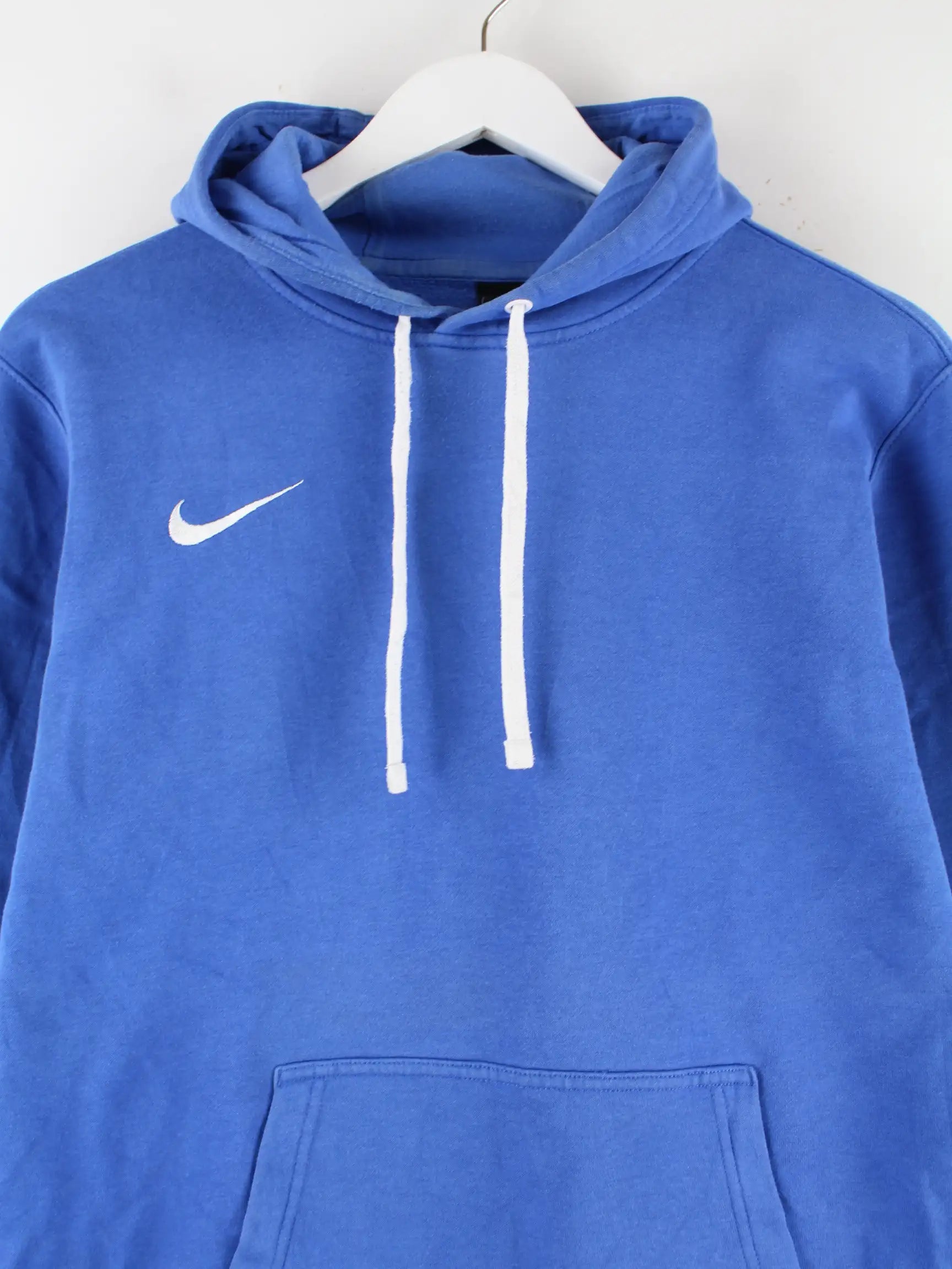 Hoodie der Marke Nike in Größe M. Er ist aus einer Baumwollmischung gemacht und in Blau in Stock.