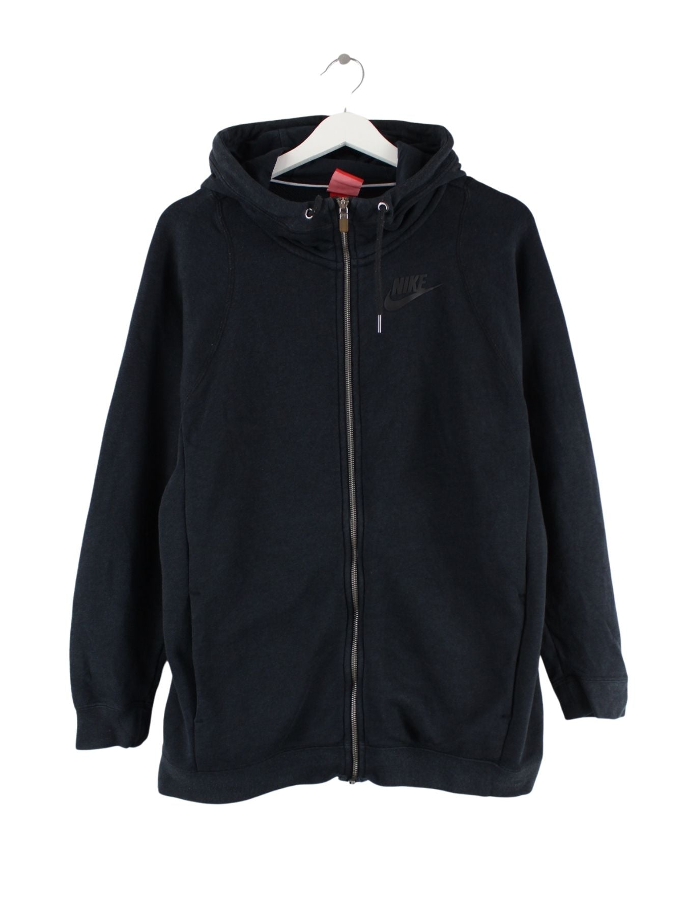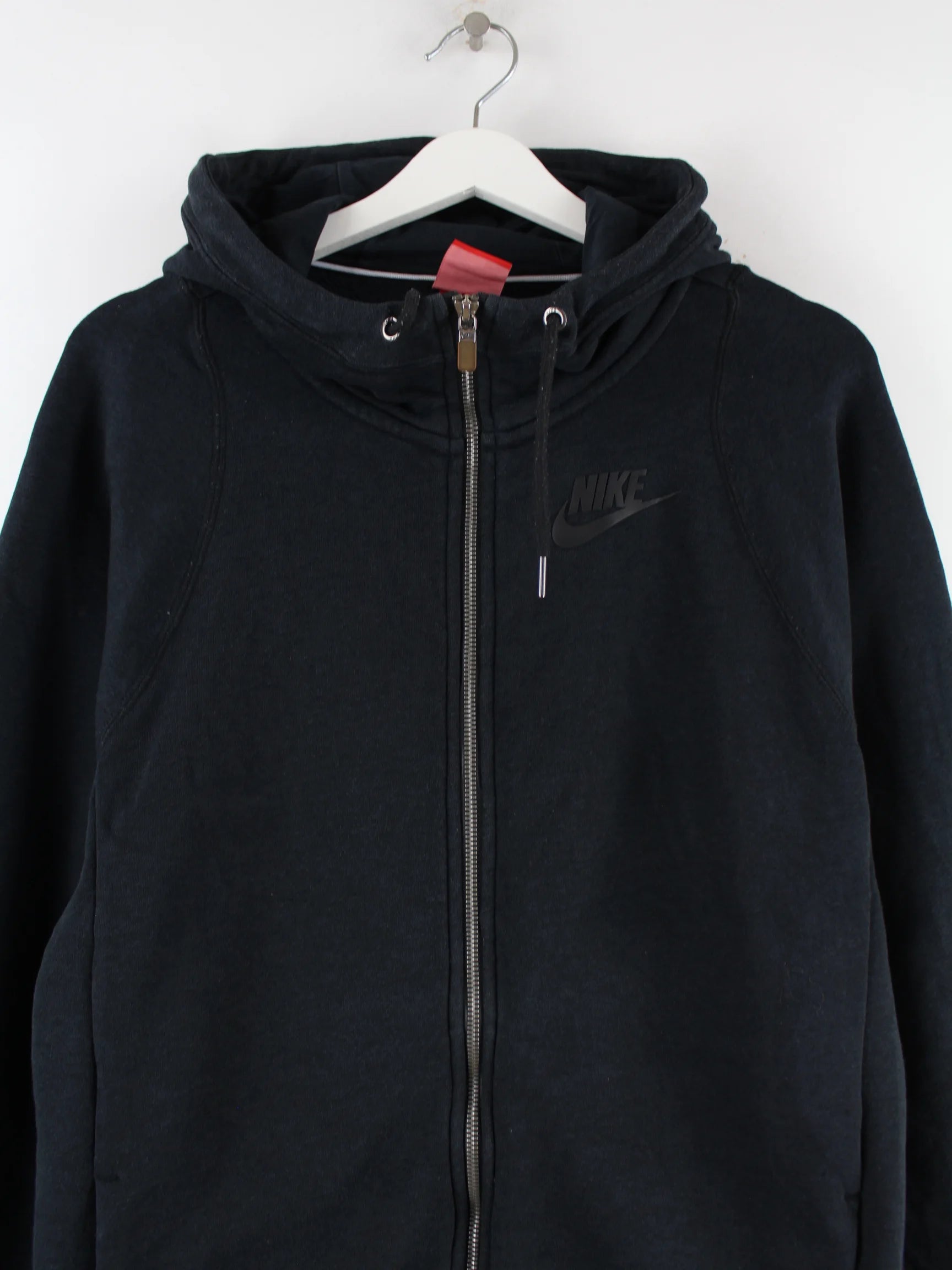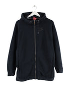 Schwarzer Hoodie mit durchgehendem Reißverschluß vom Brand Nike in Größe M. Er ist aus einer Baumwollmischung produziert und in sehr gutem Zustand vorrätig.