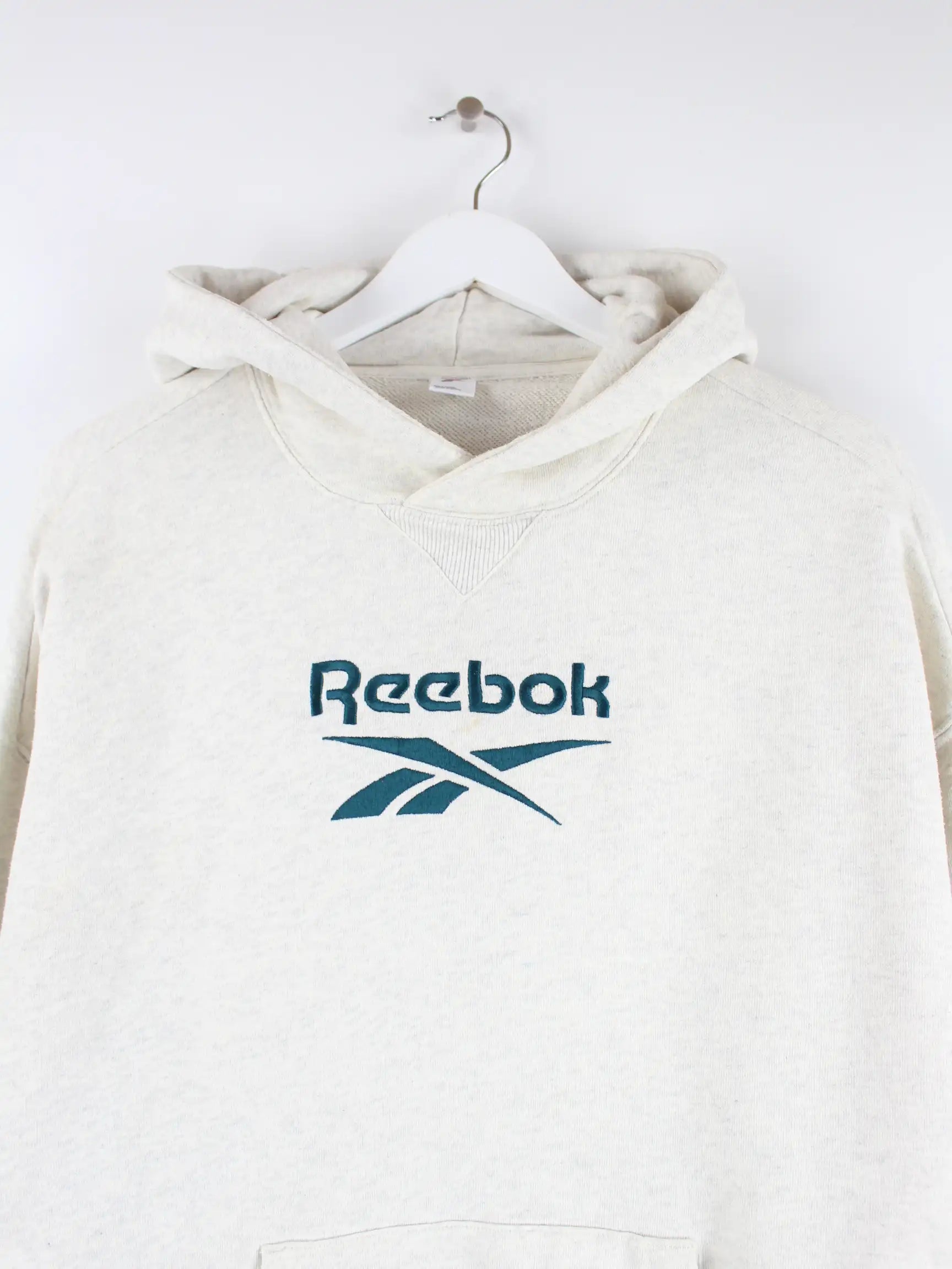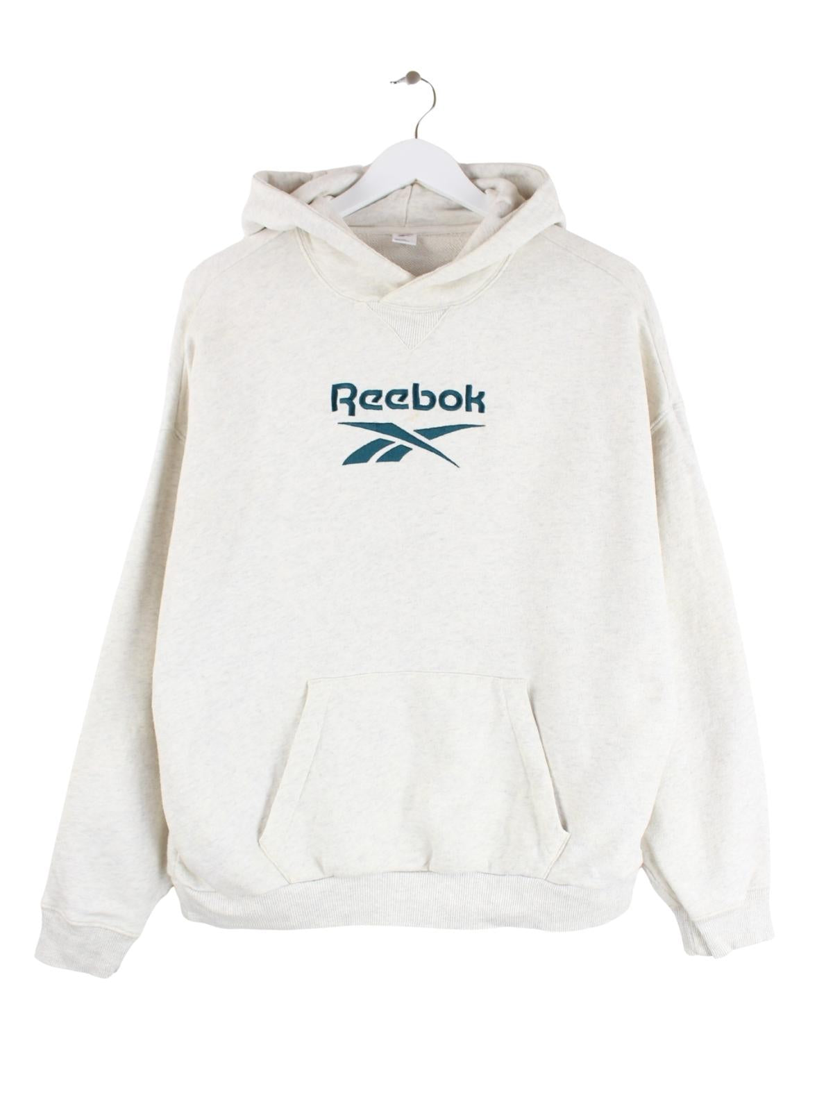 Hoodie der Brand Reebok in Größe L. Er ist aus einer Baumwollmischung gemacht und in Grau vorrätig.