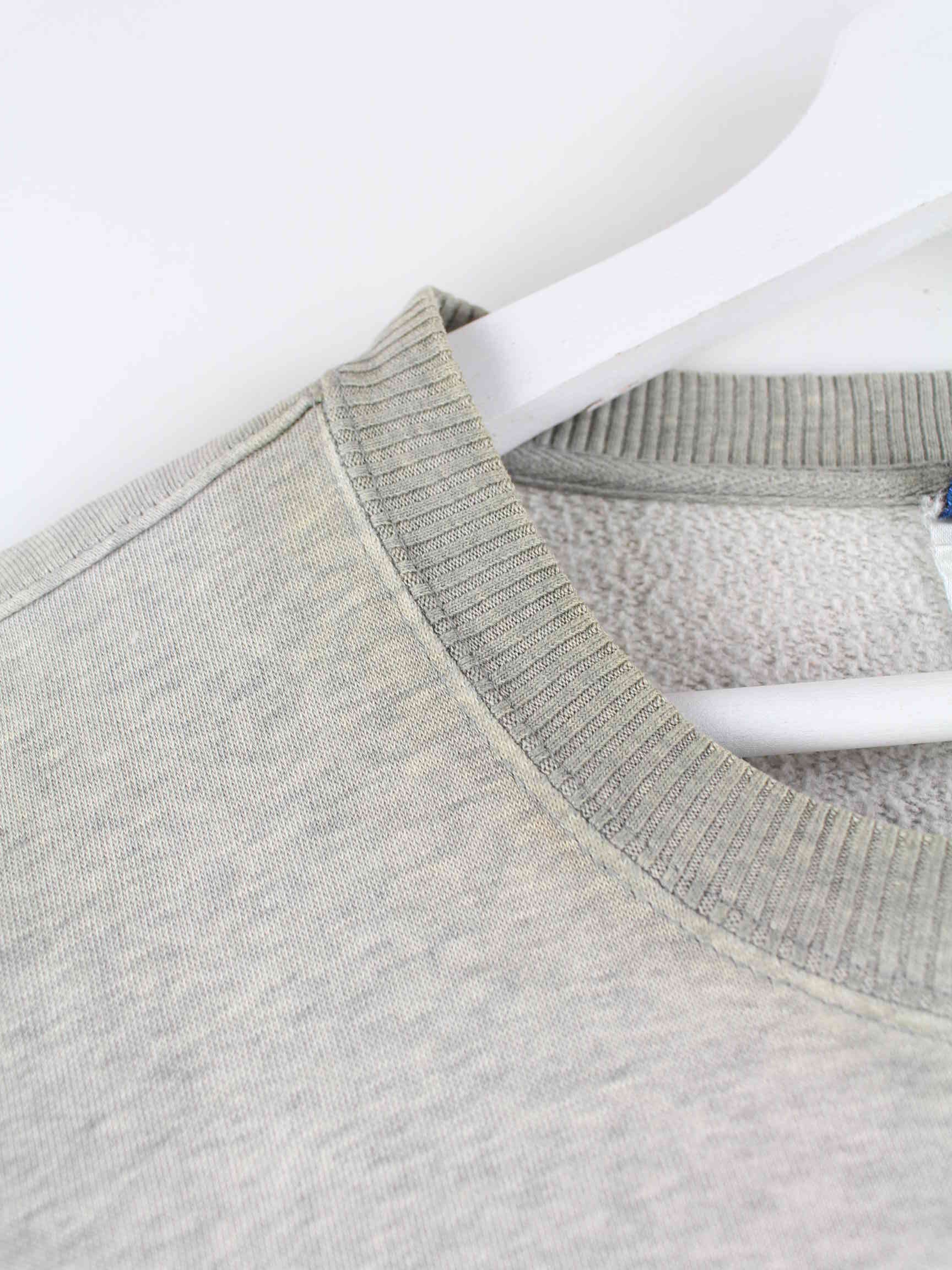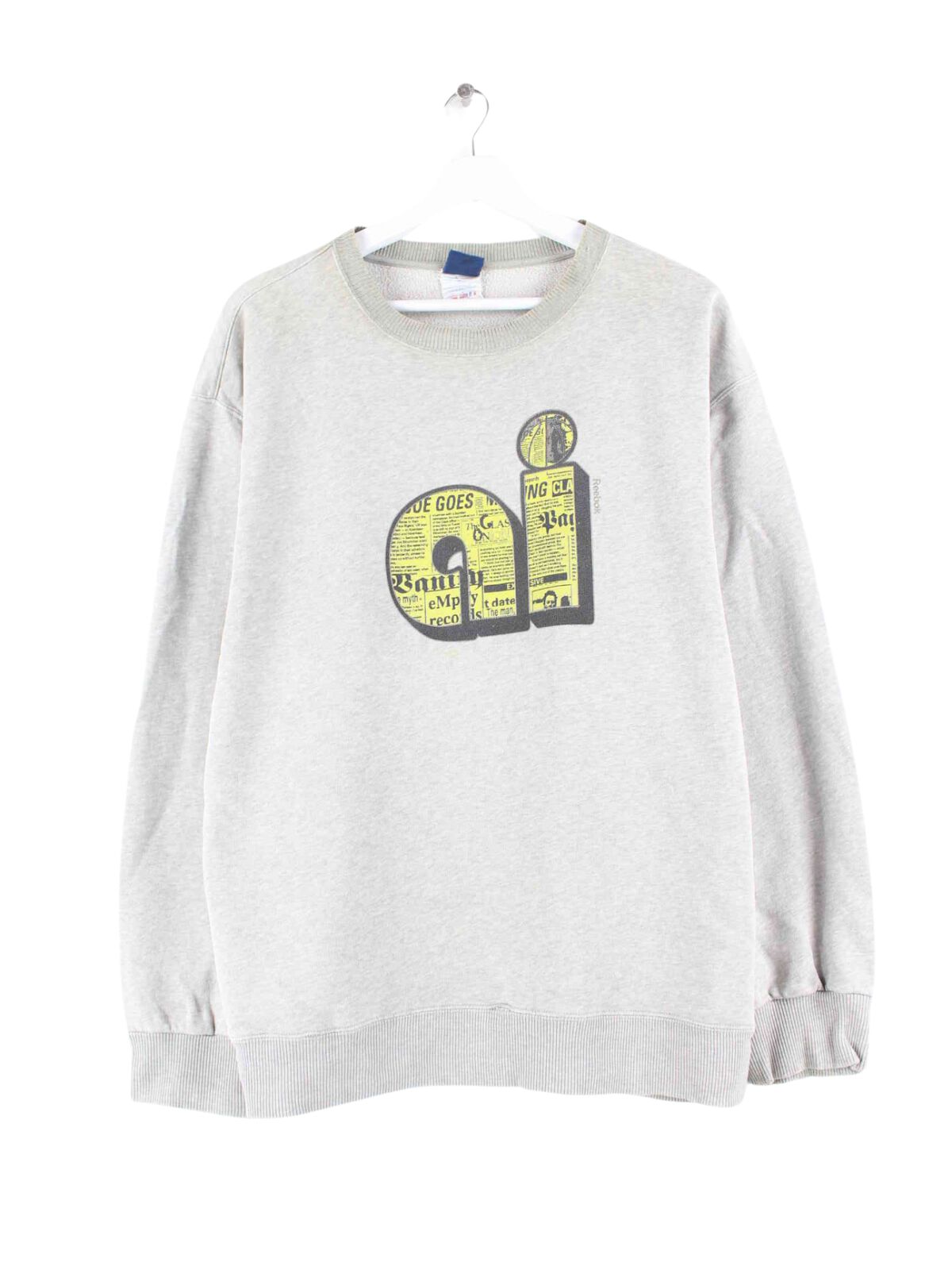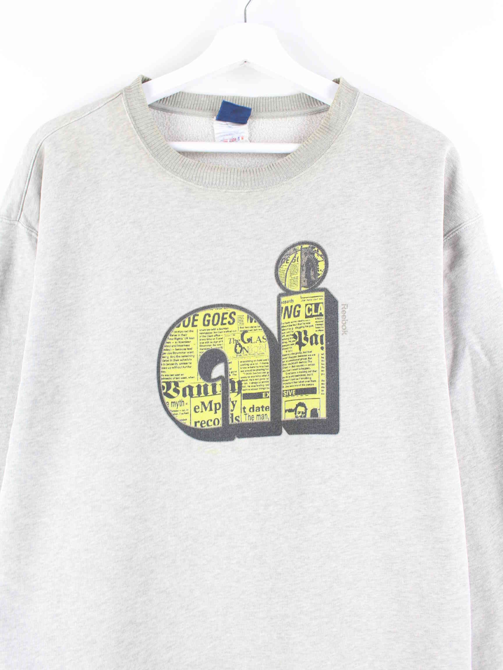 Sweater der Brand Reebok in Größe M aus Anfang der 2000'er. Er ist aus einer Baumwollmischung angefertigt und in Grau vorrätig. Mit schickem y2k Print.