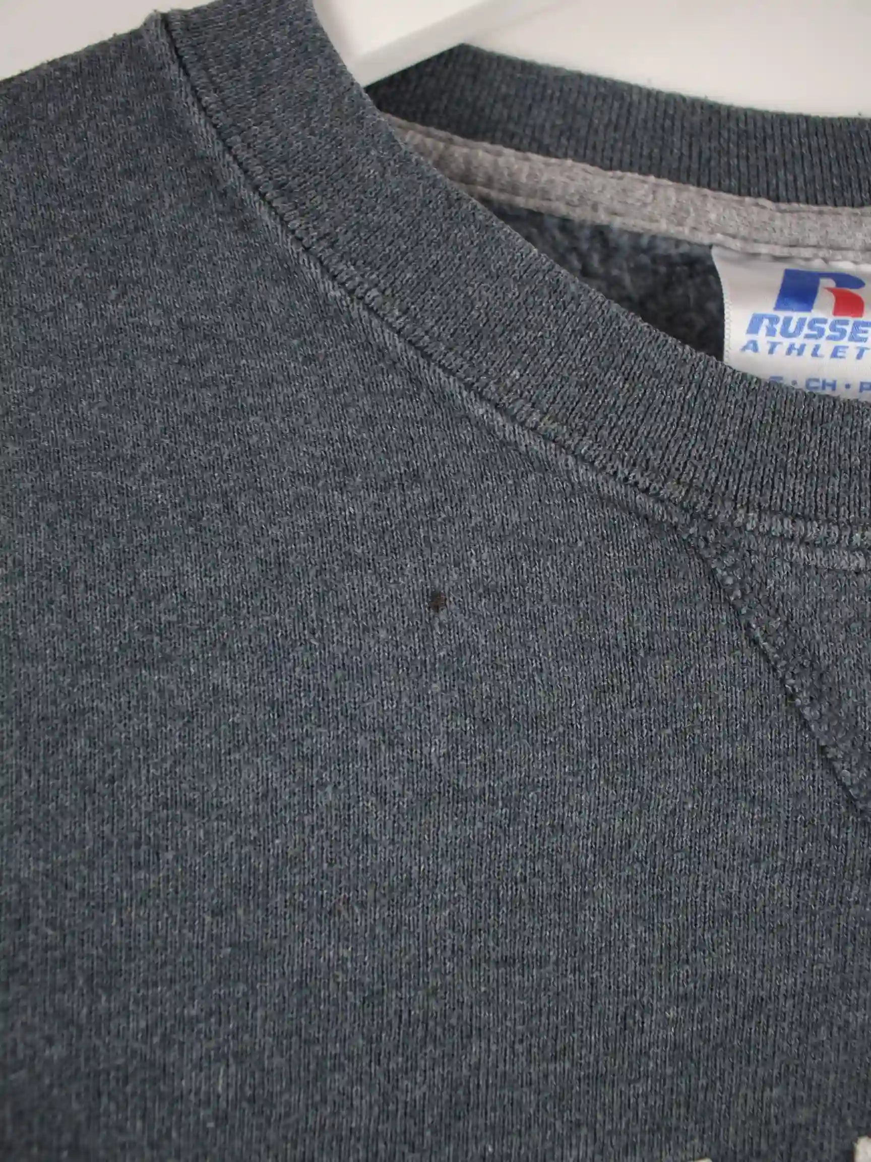 Sweater des Labels Russell Athletic in Größe S. Er ist aus einer Baumwollmischung angefertigt und in Grau zu haben.