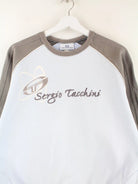 Sweater vom Brand Sergio Tacchini mit gestickten Motiven in Größe M aus Anfang der 2000'er. Er ist aus einer Baumwollmischung produziert und in Blau bei uns vorrätig.