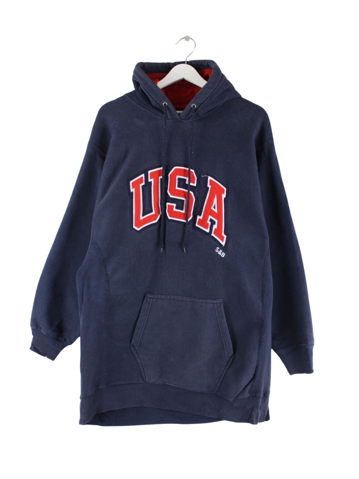 Steve & Barry's 00s USA Embroidered Oversized Hoodie Blau L