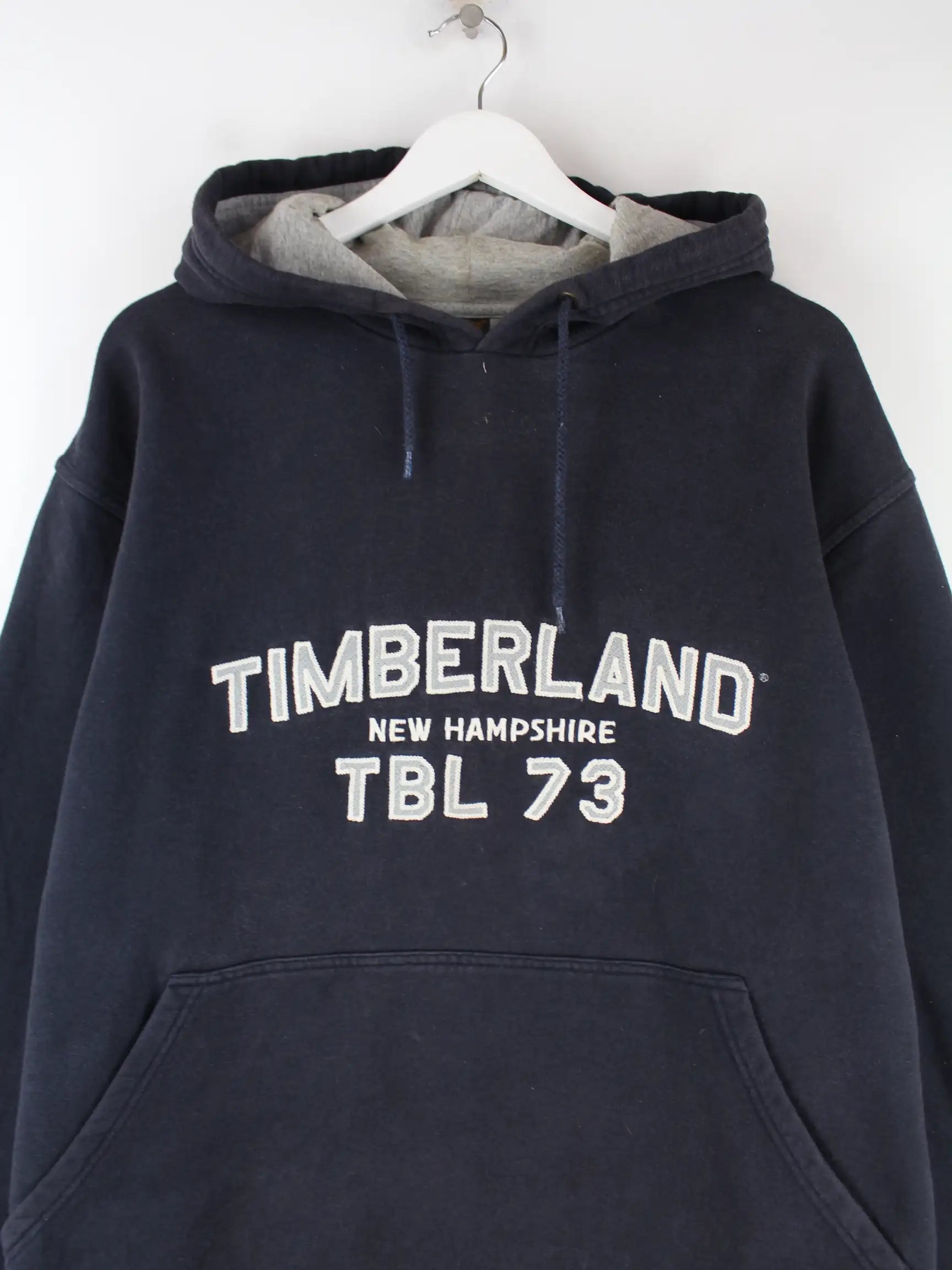 Schwarzer Hoodie mit gesticktem Logo vom Brand Timberland in Größe XL. Er ist aus einer Baumwollmischung gefertigt und in gutem Zustand im Bestand.