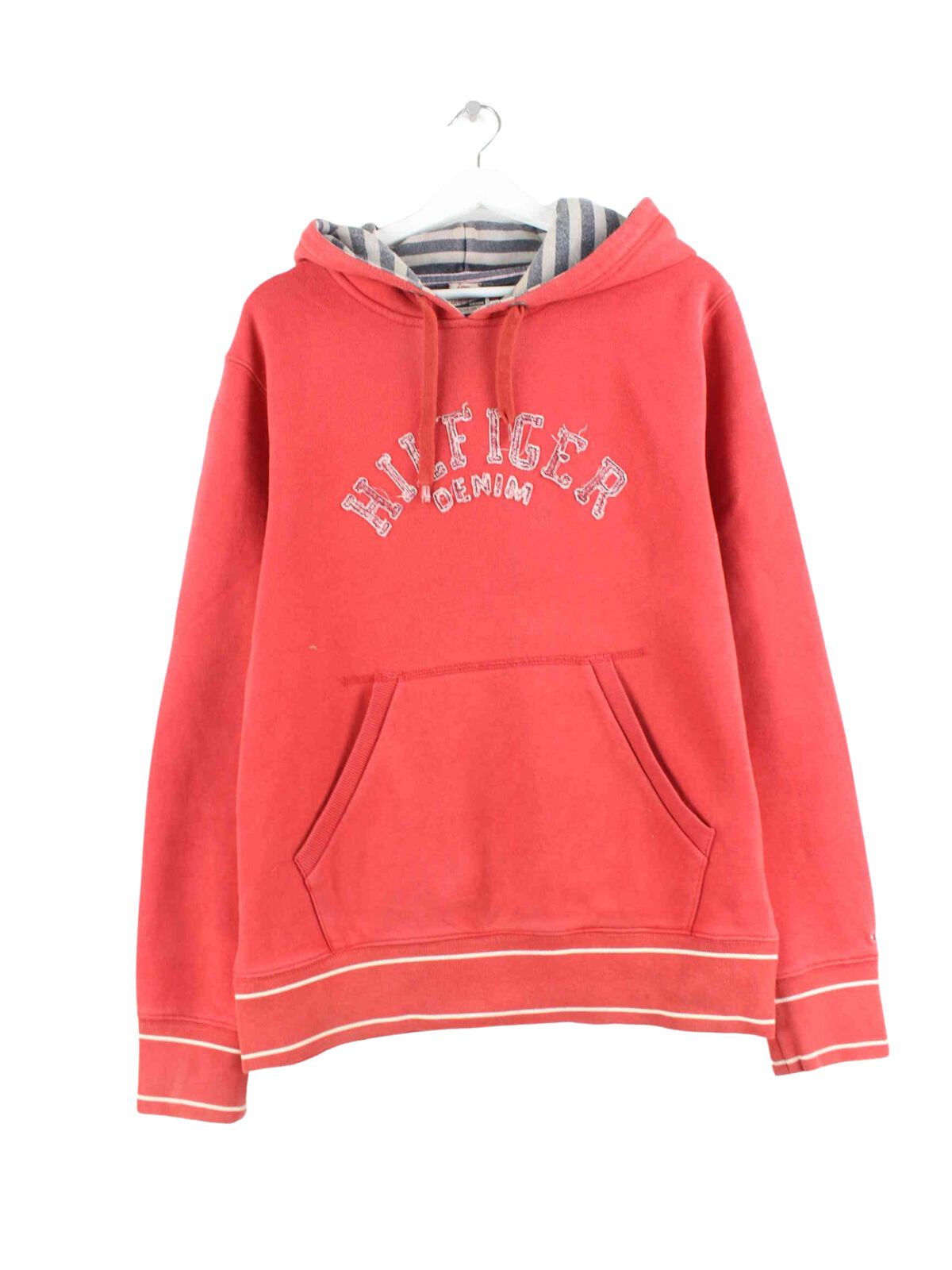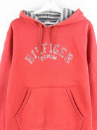 Roter Hoodie mit Stick der Brand Tommy Hilfiger aus Anfang der 2000'er in Größe L. Er ist aus einer Baumwollmischung gefertigt und in gutem Zustand vorrätig.