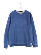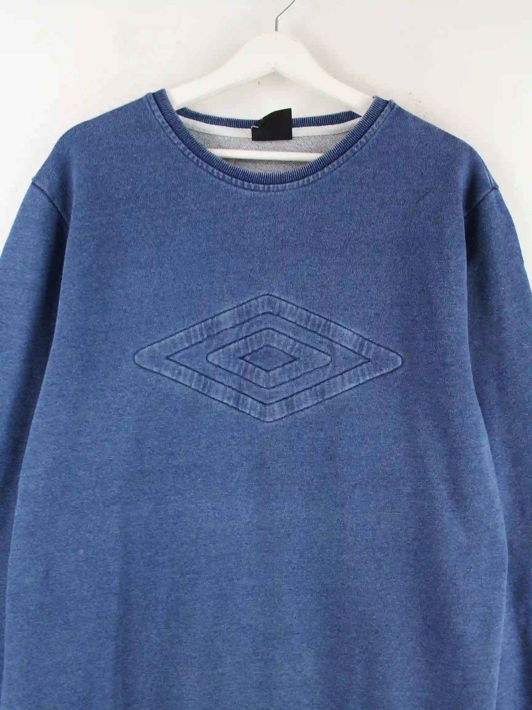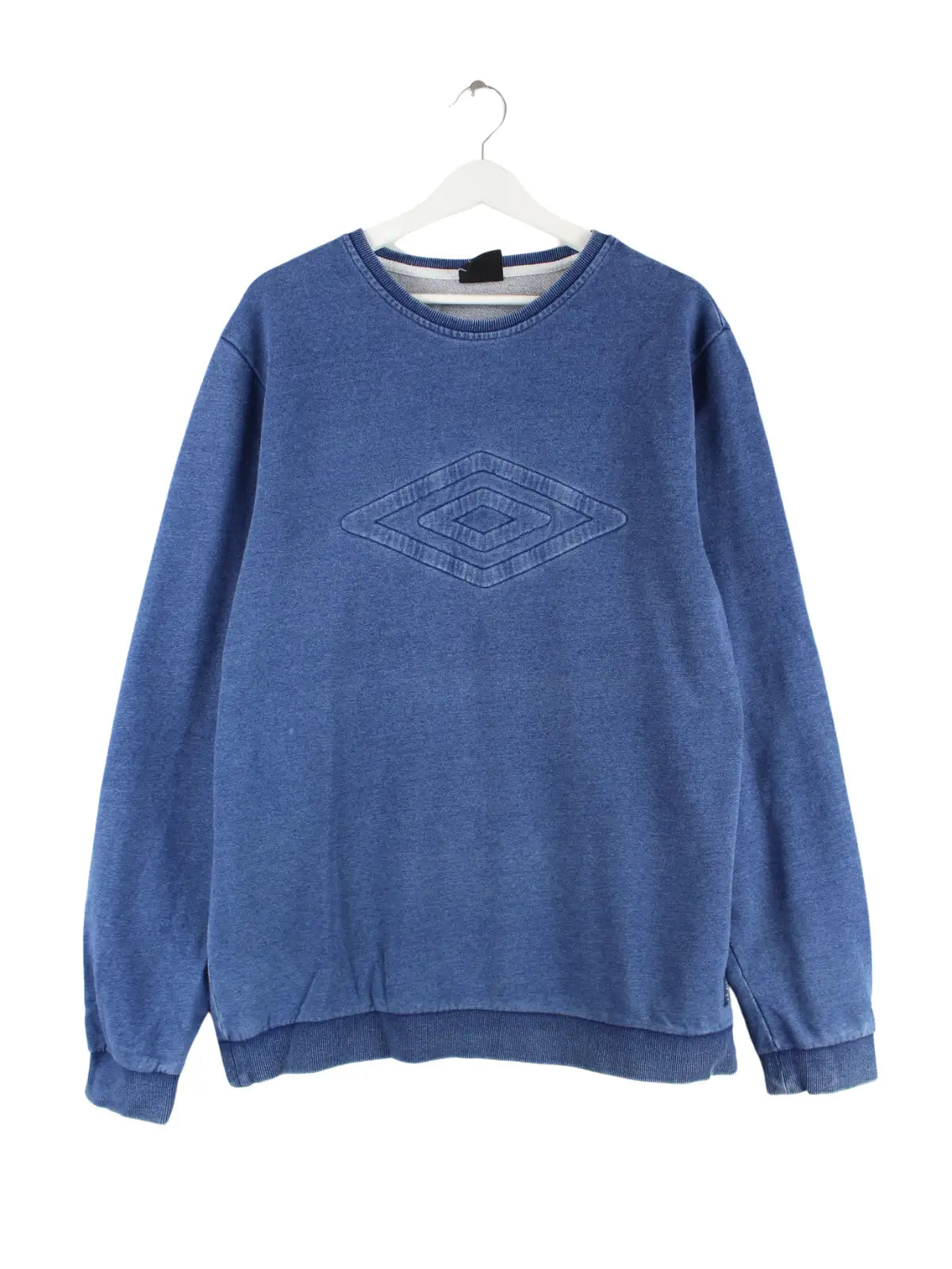 Sweater des Labels Umbro mit Stickereien in Größe XL. Er ist aus einer Baumwollmischung angefertigt und in Blau bei uns vorrätig.