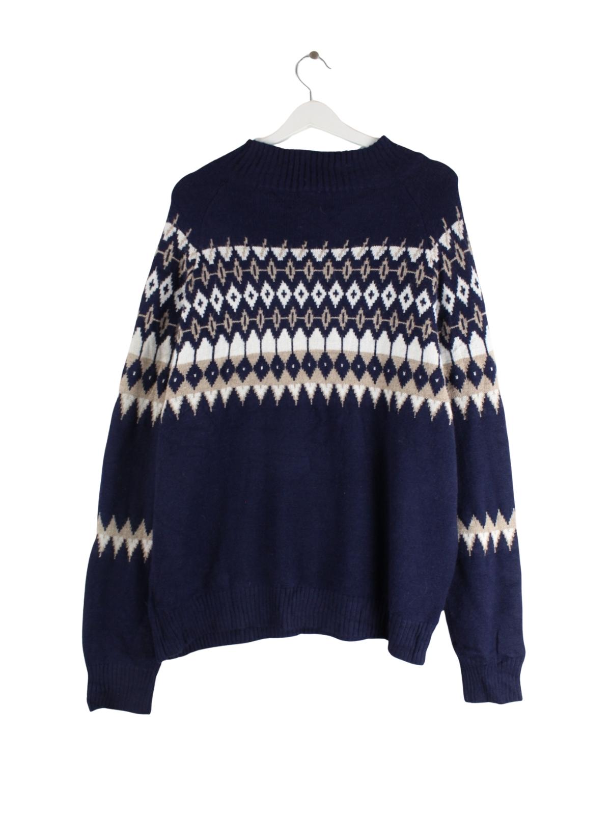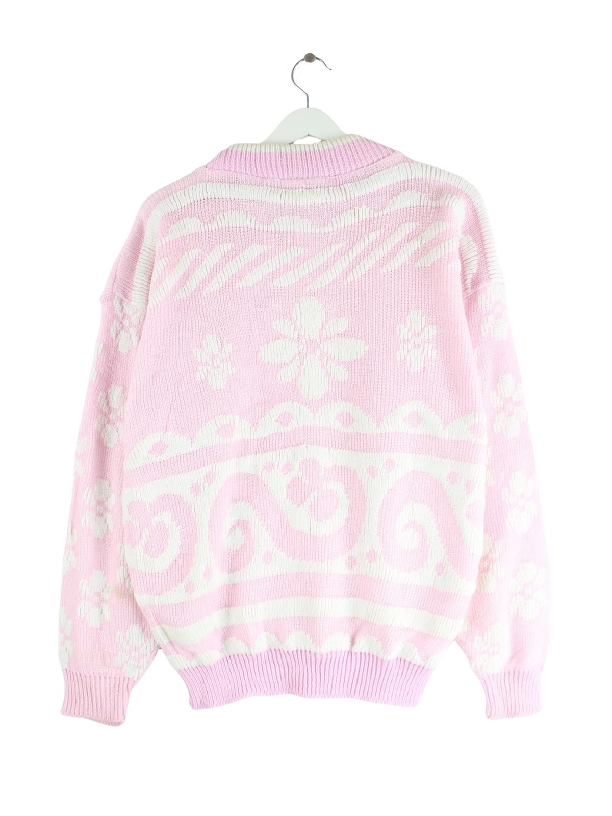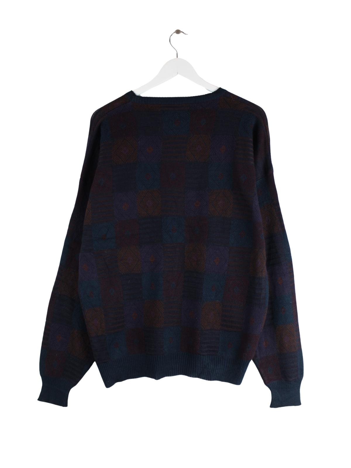 Vintage 3D Pattern V-Neck Pullover Grau XL