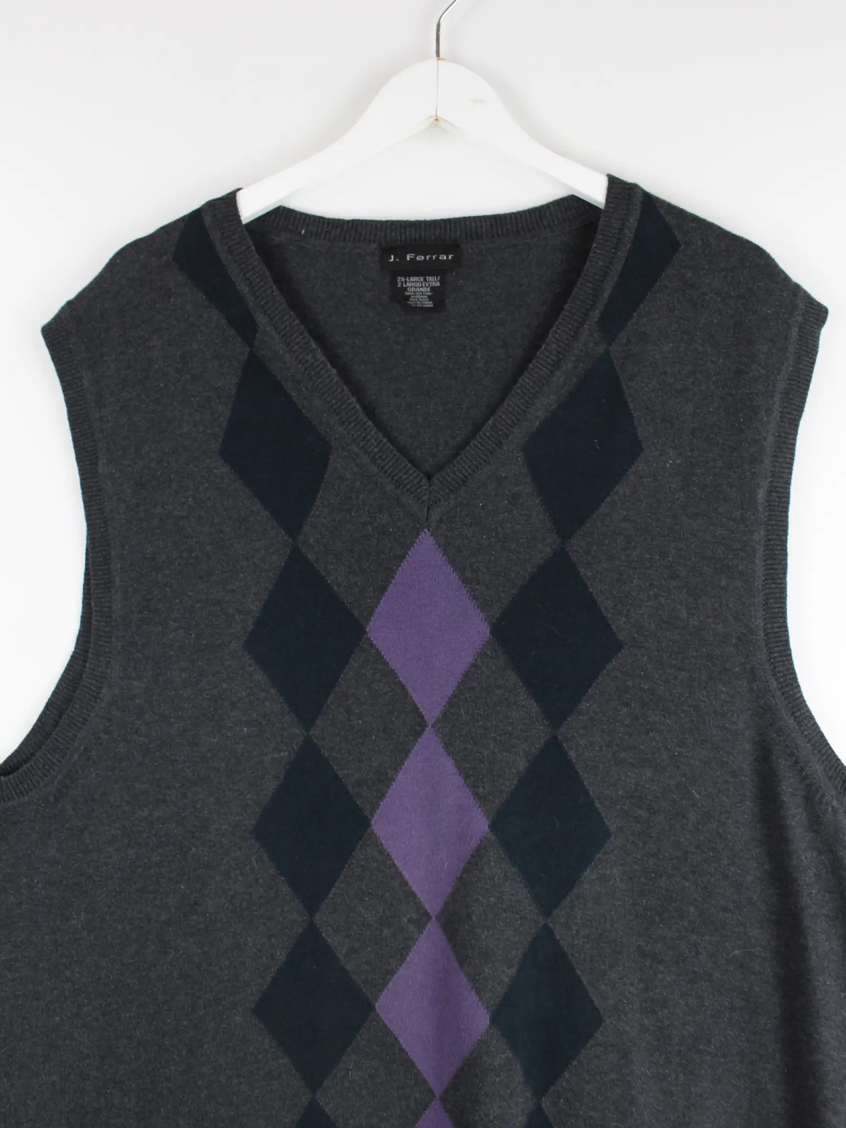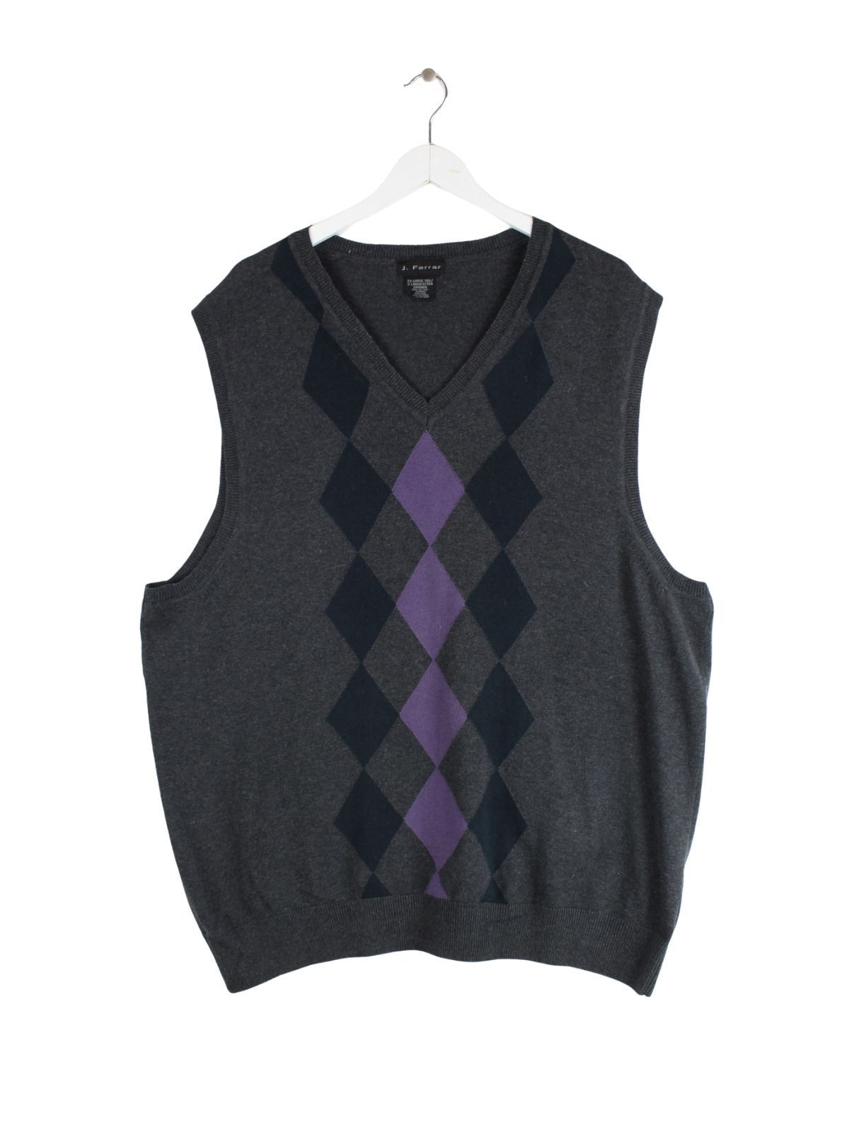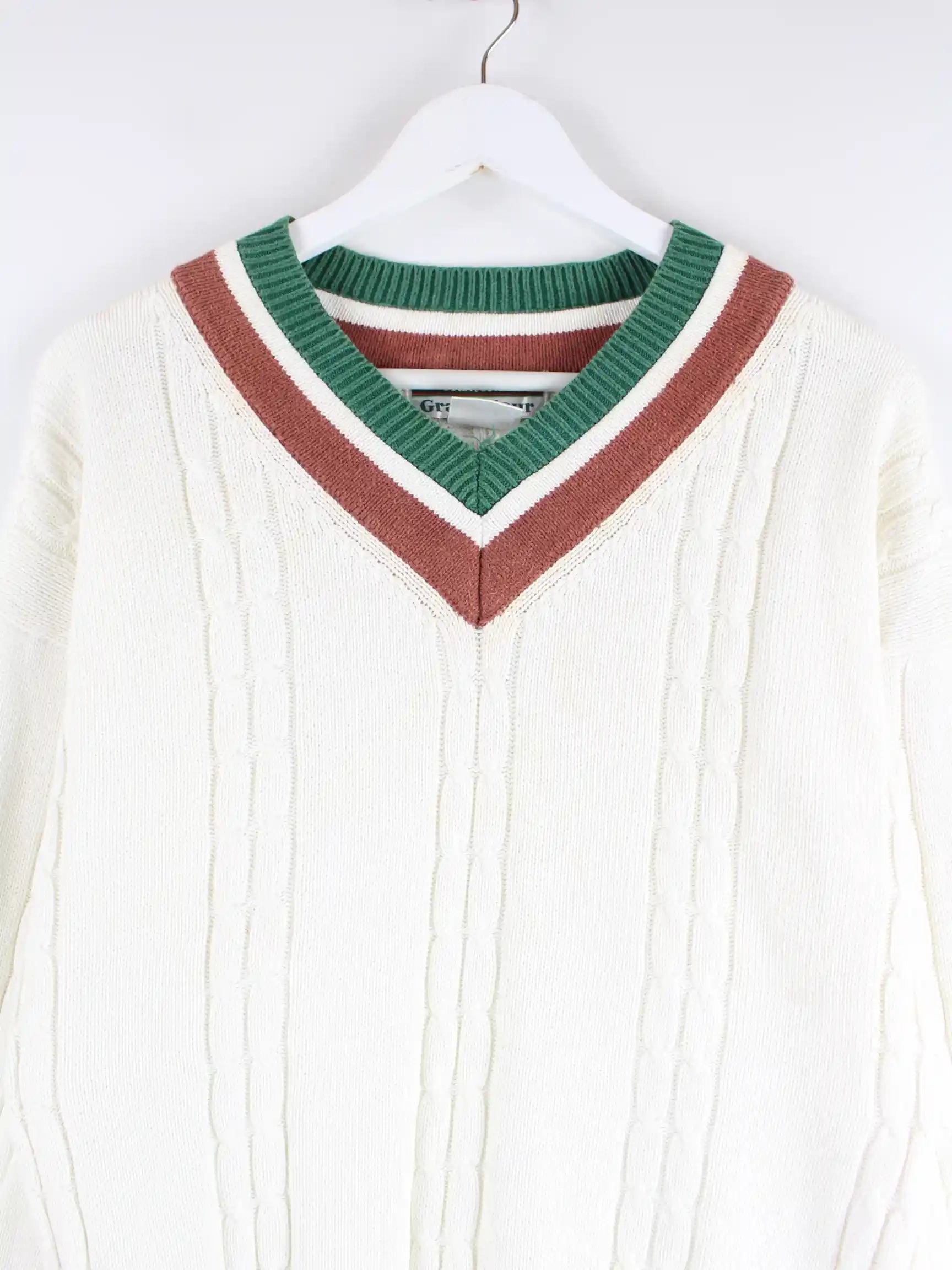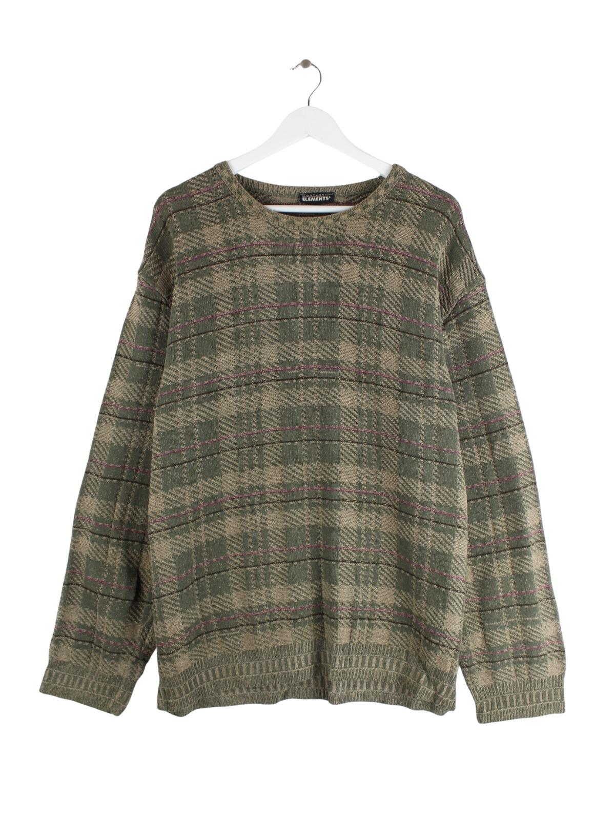 Vintage 3D Pattern V-Neck Pullover Grau XL