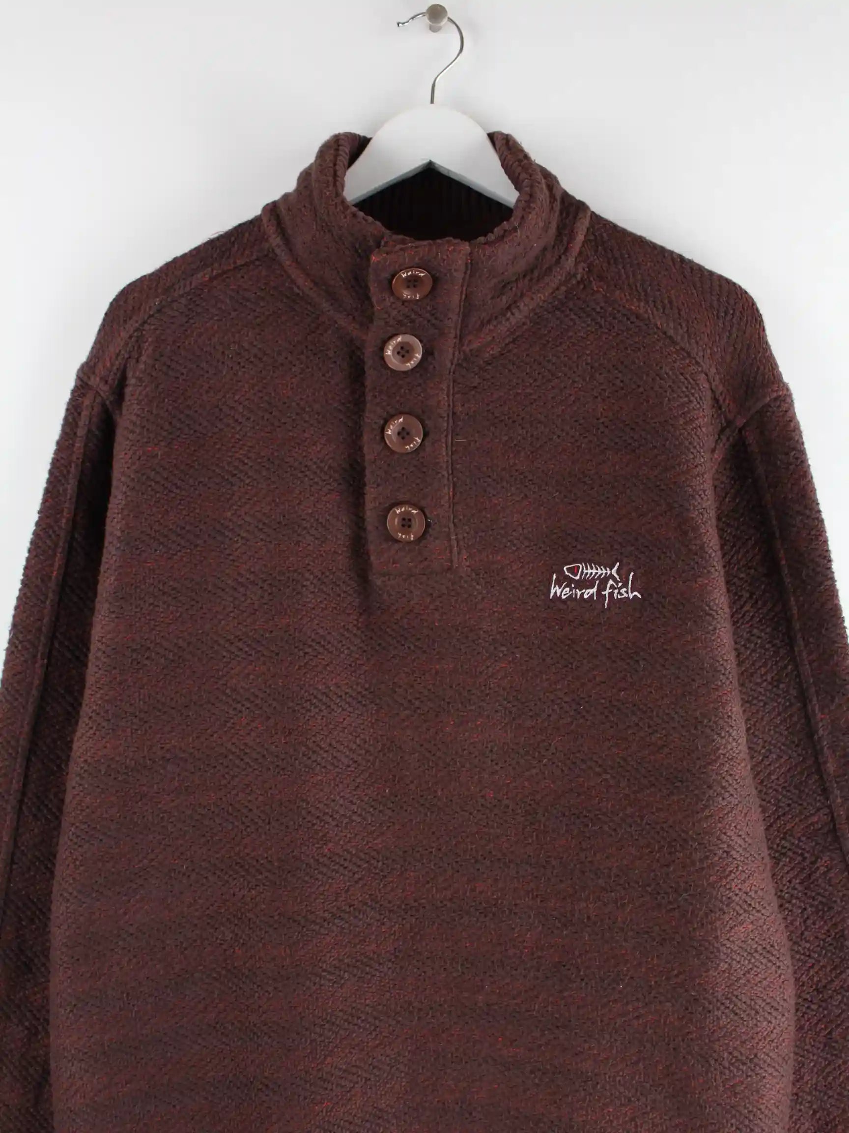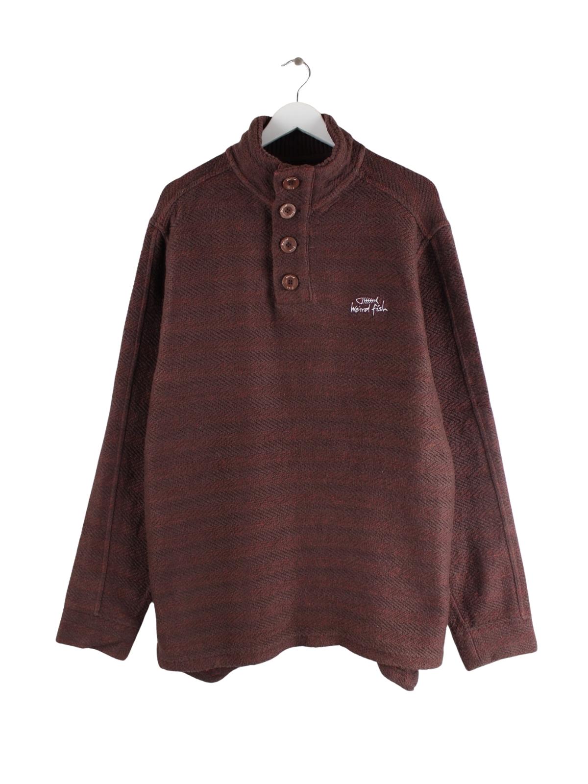Weird Fish Knit Half Button Sweater Braun XXL