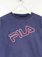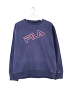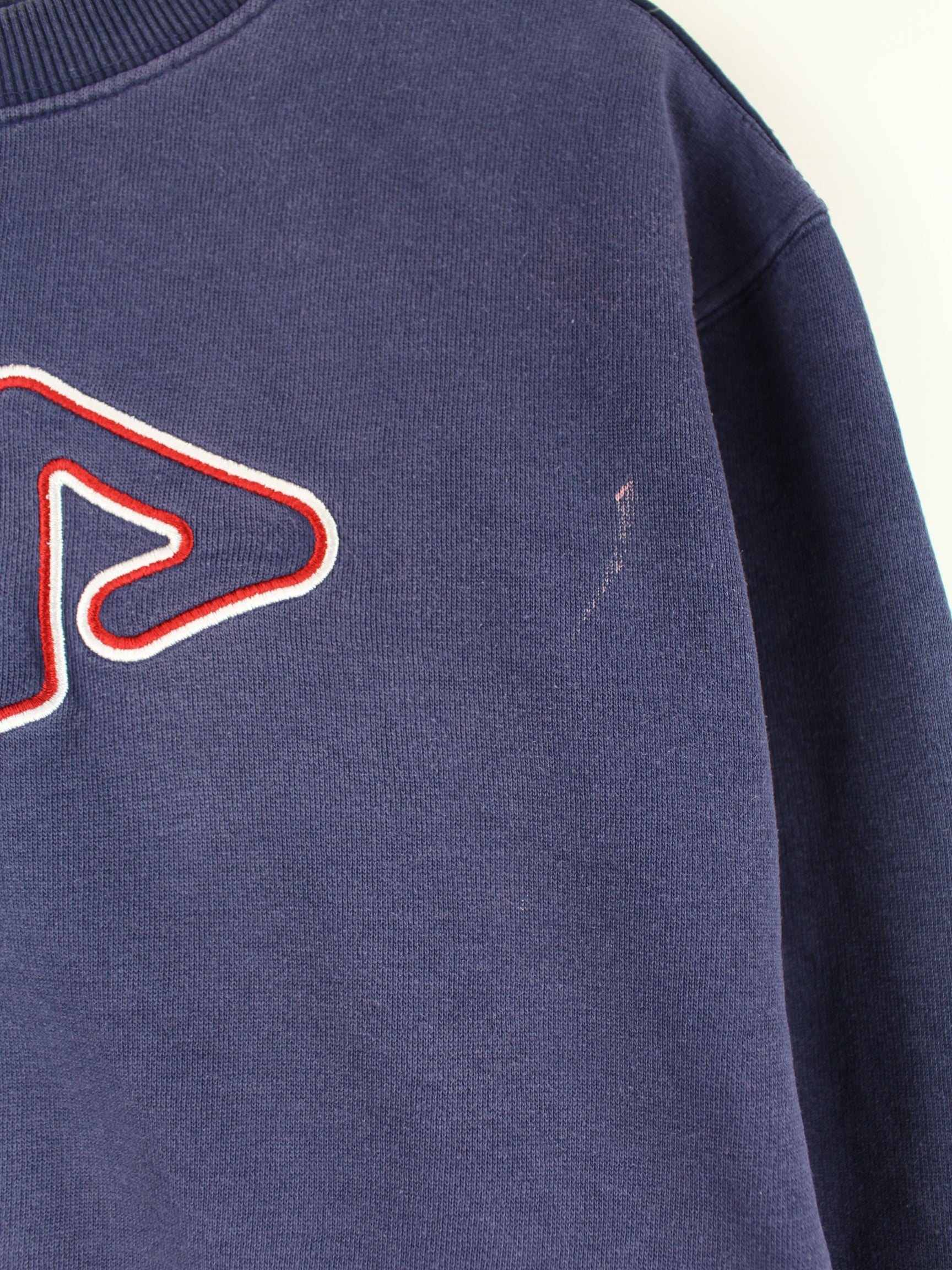Blauer Sweater mit Stick vom Label Fila in Größe S. Er ist aus einer Baumwollmischung hergestellt und in gutem Zustand in Stock.