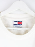 Weißer Sweater des Labels Tommy Hilfiger in Größe L. Er ist aus einer Baumwollmischung gefertigt und in gutem Zustand lieferbar. Mit seltenem 00s Print.