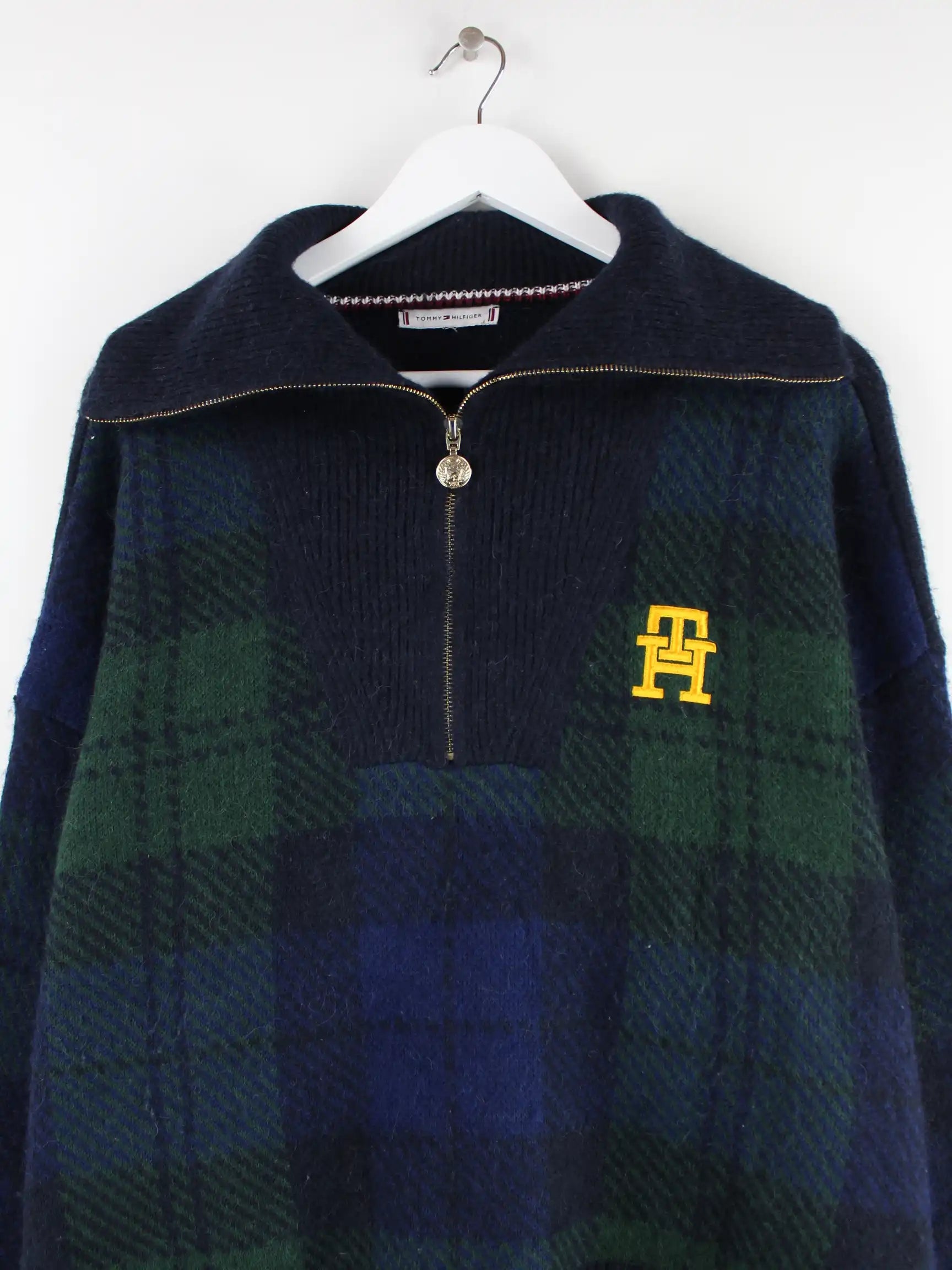Pullover der Brand Tommy Hilfiger mit halbem Reißverschluß in Größe M. Er ist aus einer Wollmischung angefertigt und in Blau bei uns vorrätig.