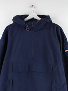 Blauer Windbreaker des Labels Tommy Hilfiger in Größe L. Er ist aus Synthetik produziert und in sehr gutem Zustand bei uns vorrätig.