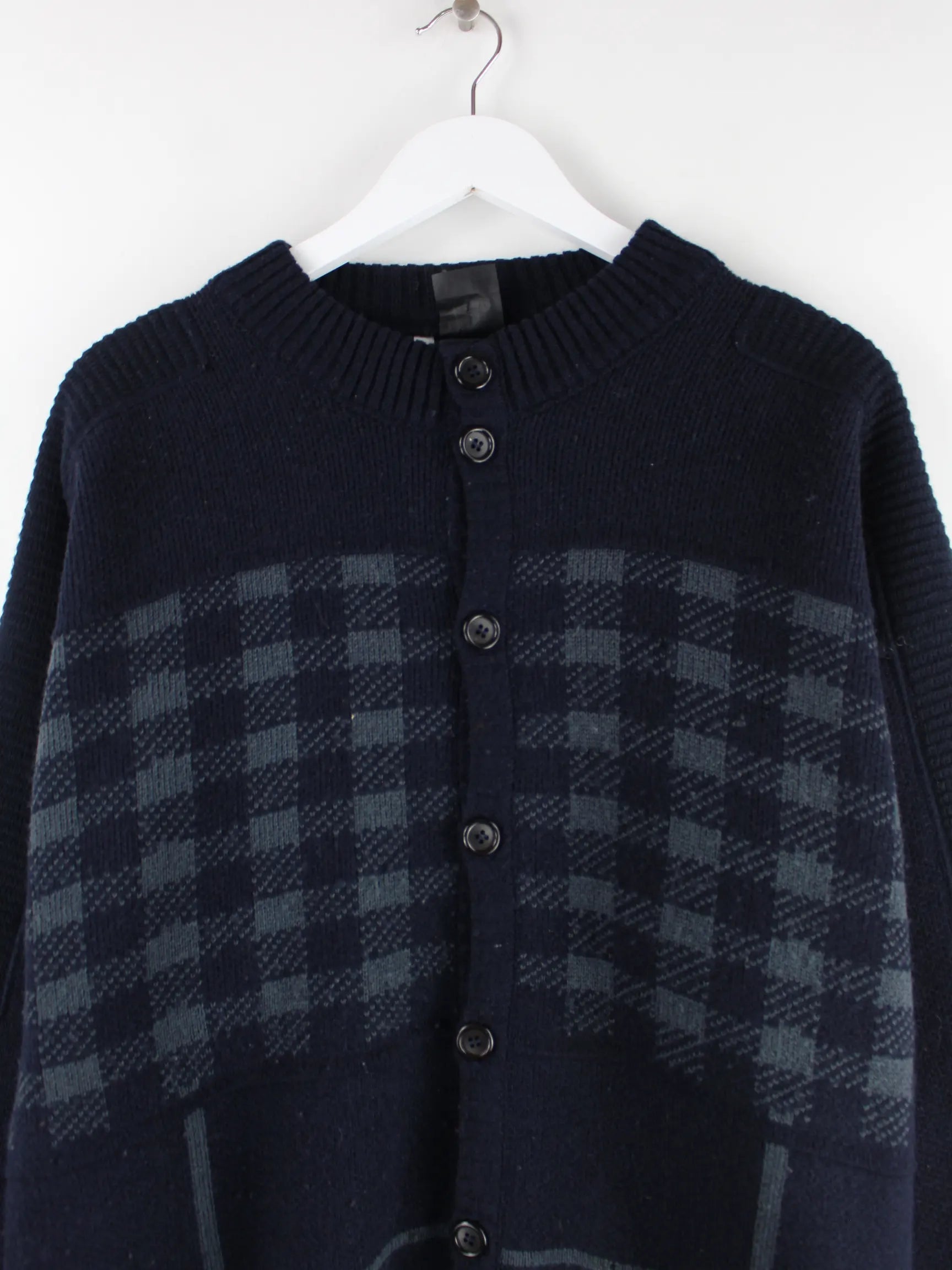 Vintage 90s Woll Cardigan Strickjacke Blau S