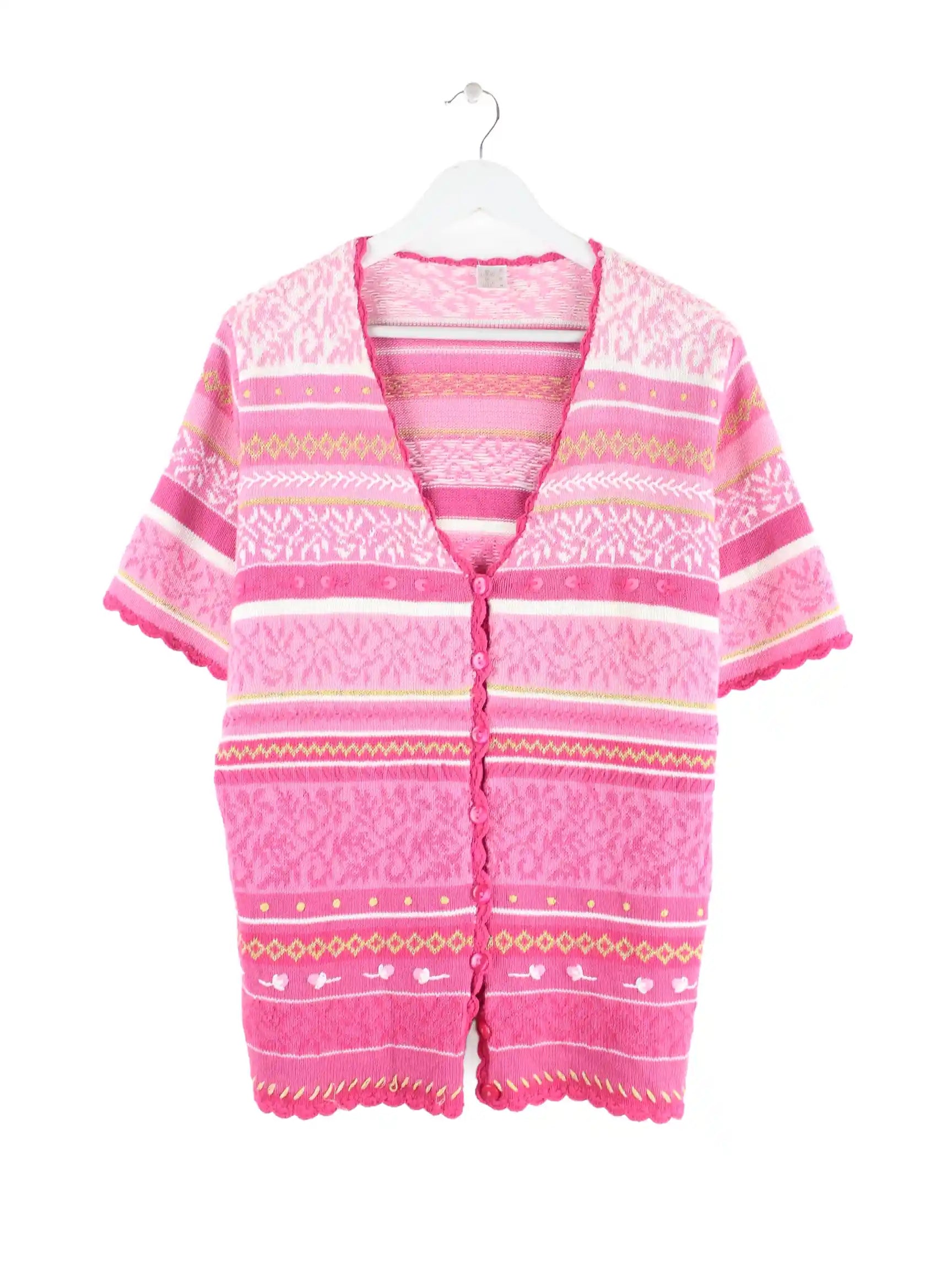 Vintage Damen Short Sleeve Strickjacke Pink M