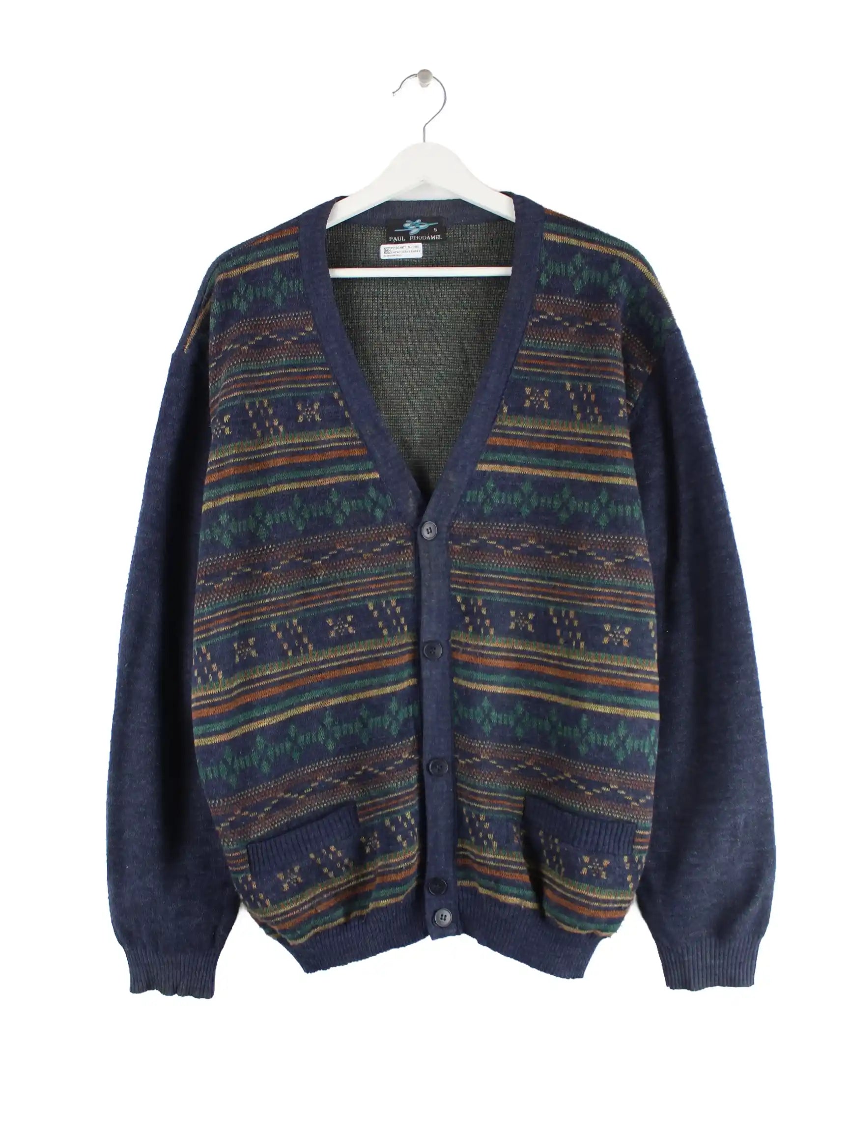 Vintage Damen 90s Pattern Woll Strickjacke Mehrfarbig L
