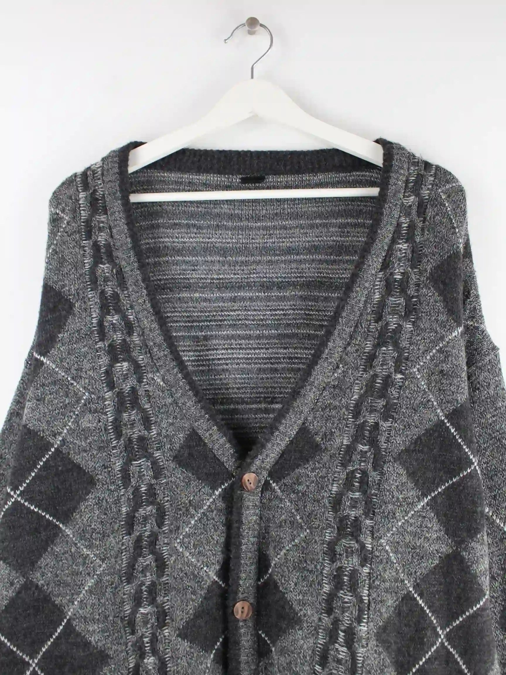 Vintage 00s Pattern Cardigan Strickjacke Grau XL