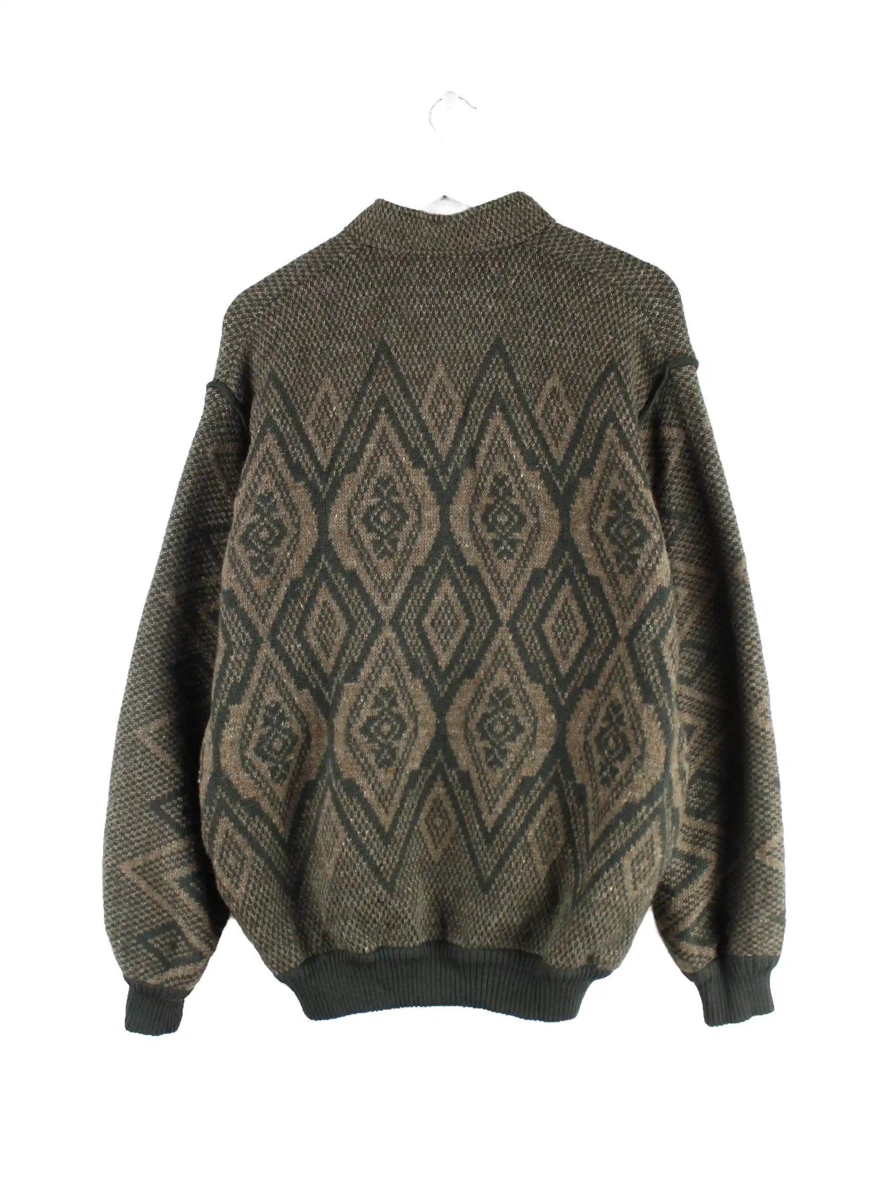 Vintage 90s Pattern Woll Strickjacke Beige L