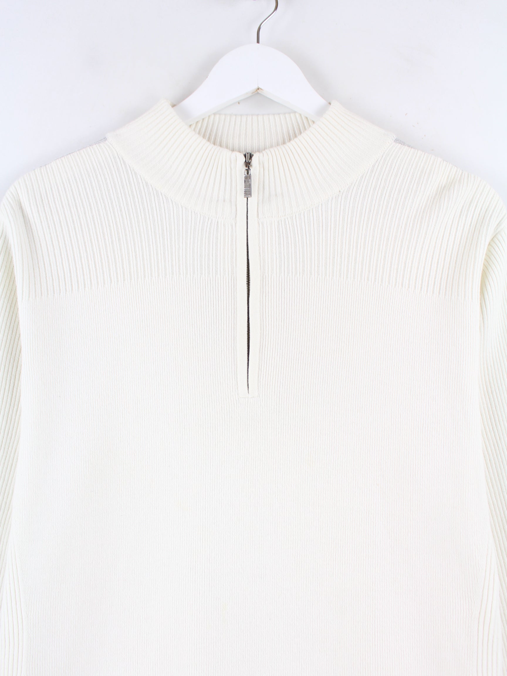 Beigefarbener Pullover mit gesticktem Logo und kurzem Reißverschluß des Labels Tommy Hilfiger in Größe XL. Er ist aus Baumwolle produziert und in sehr gutem Zustand zu haben.
