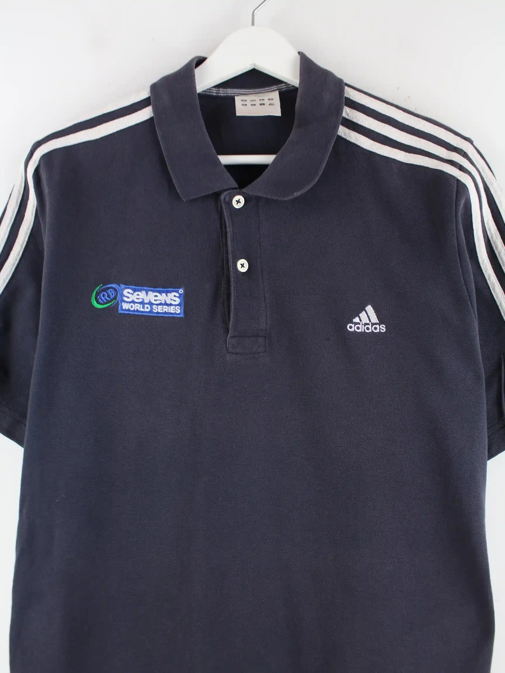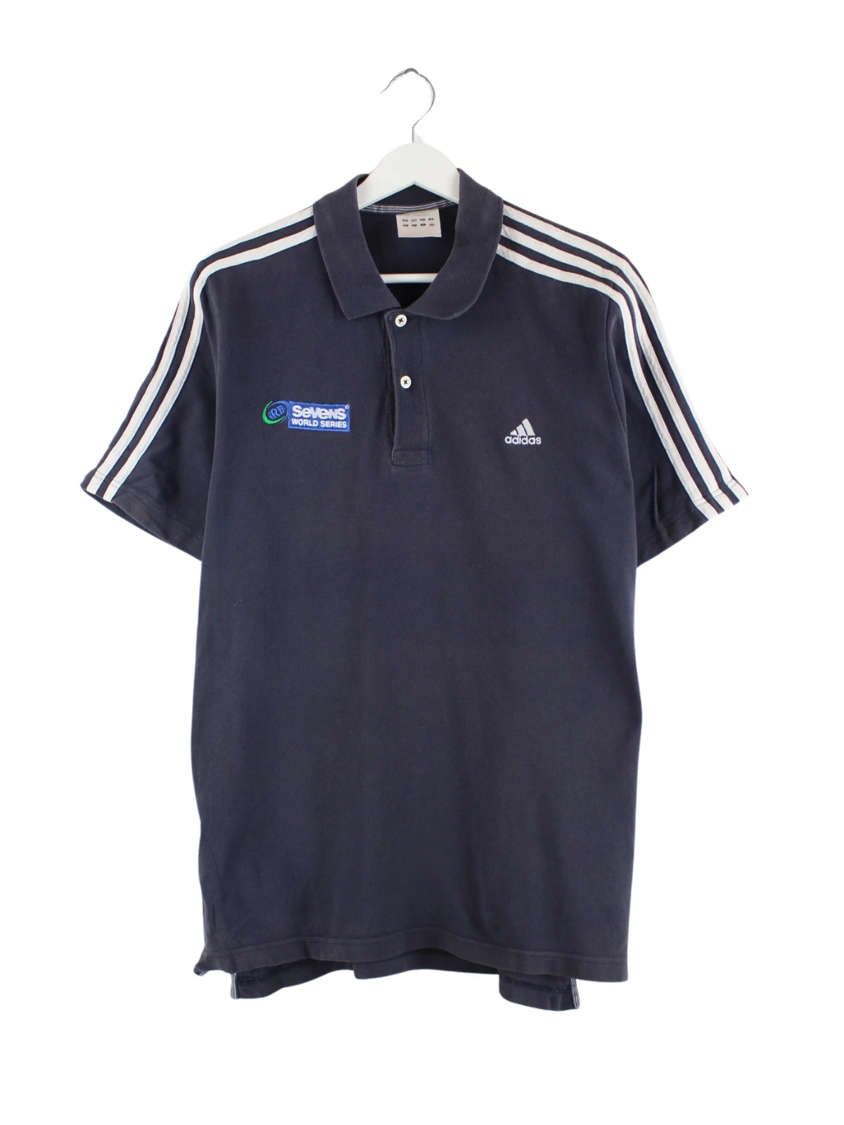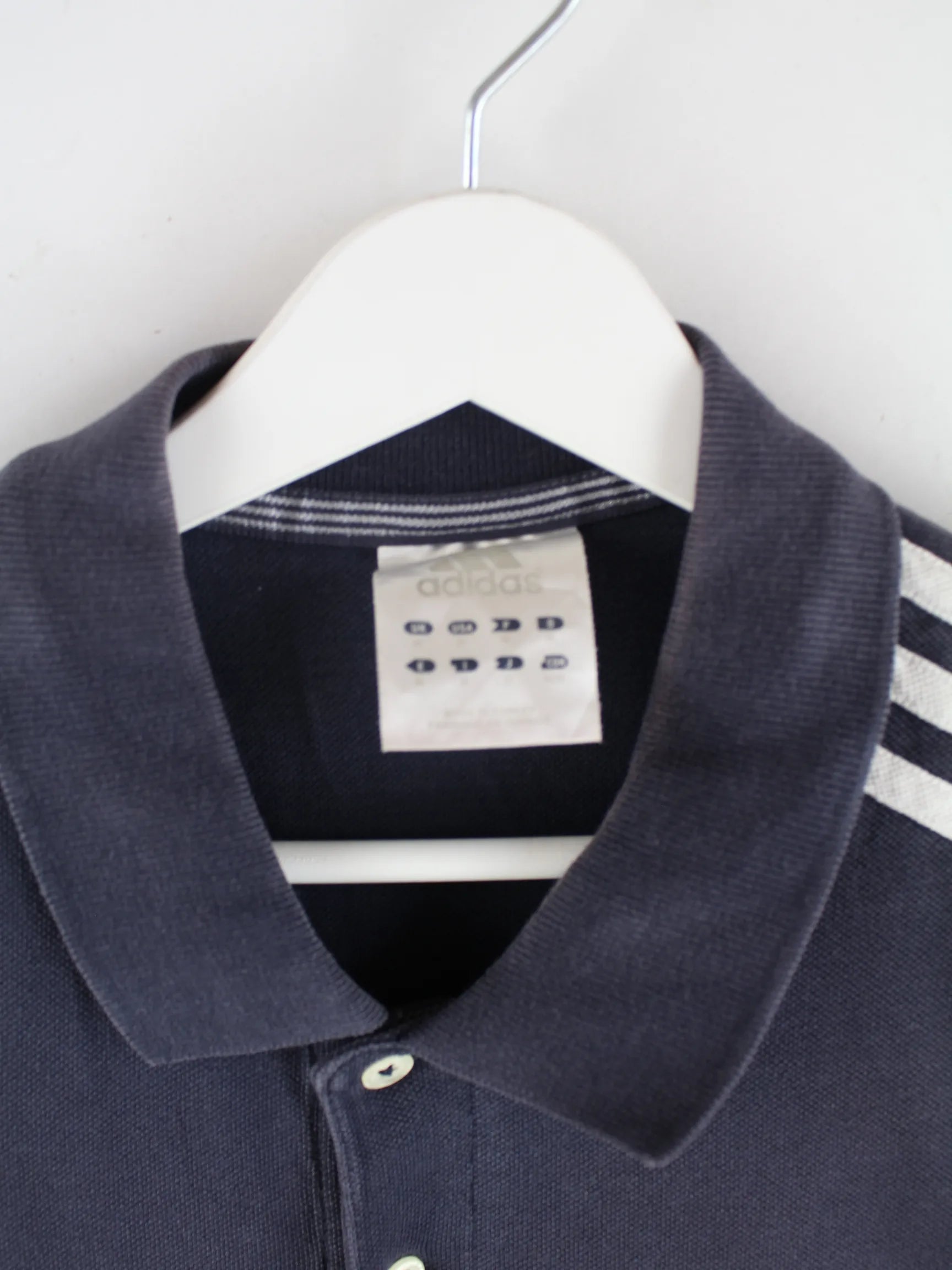Poloshirt der Marke Adidas in Größe M. Es ist aus Baumwolle angefertigt und in Schwarz vorrätig.