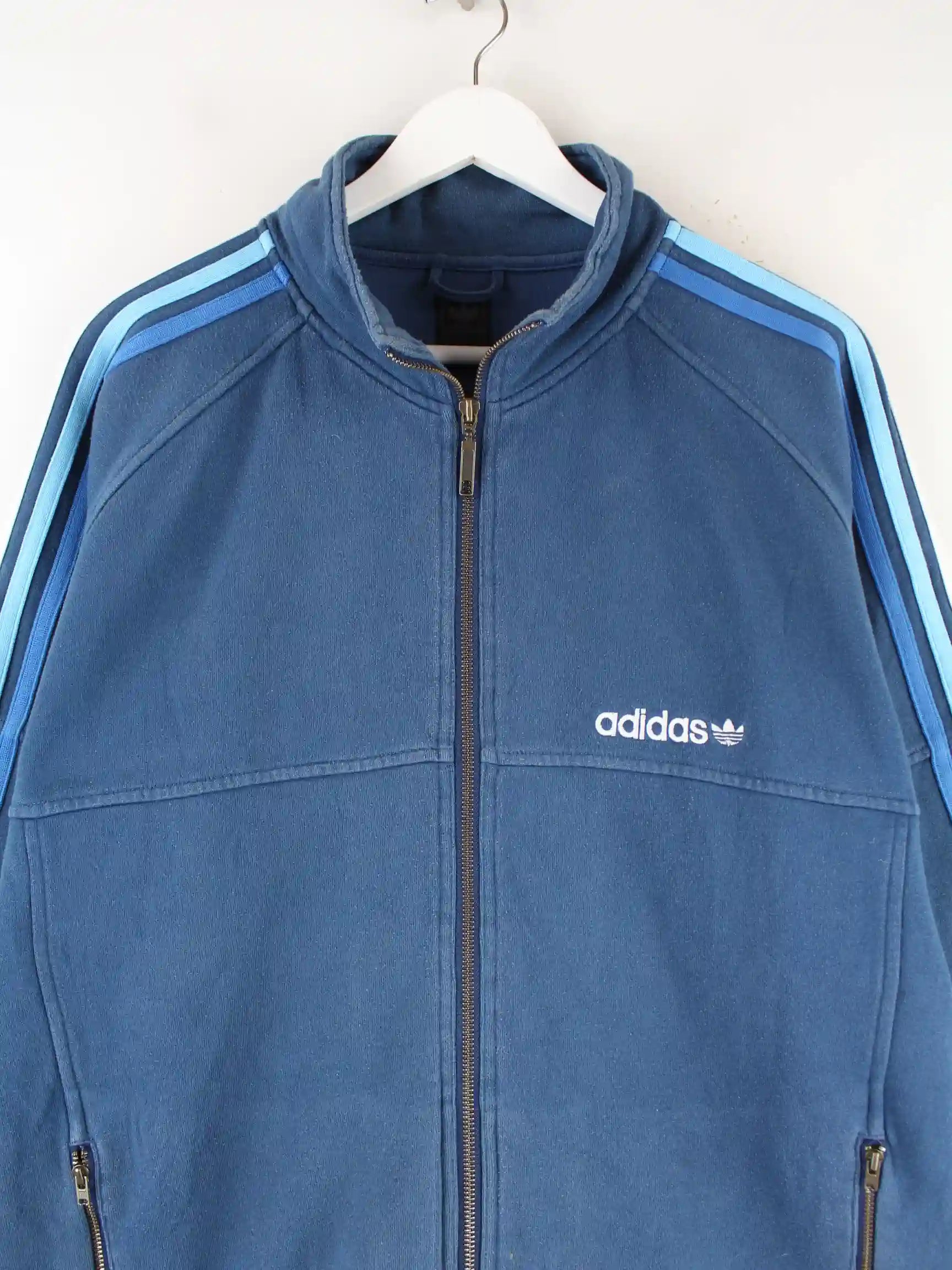 Sweatjacke der Marke Adidas in Größe XL. Sie ist aus einer Baumwollmischung gefertigt und in Blau im Angebot.