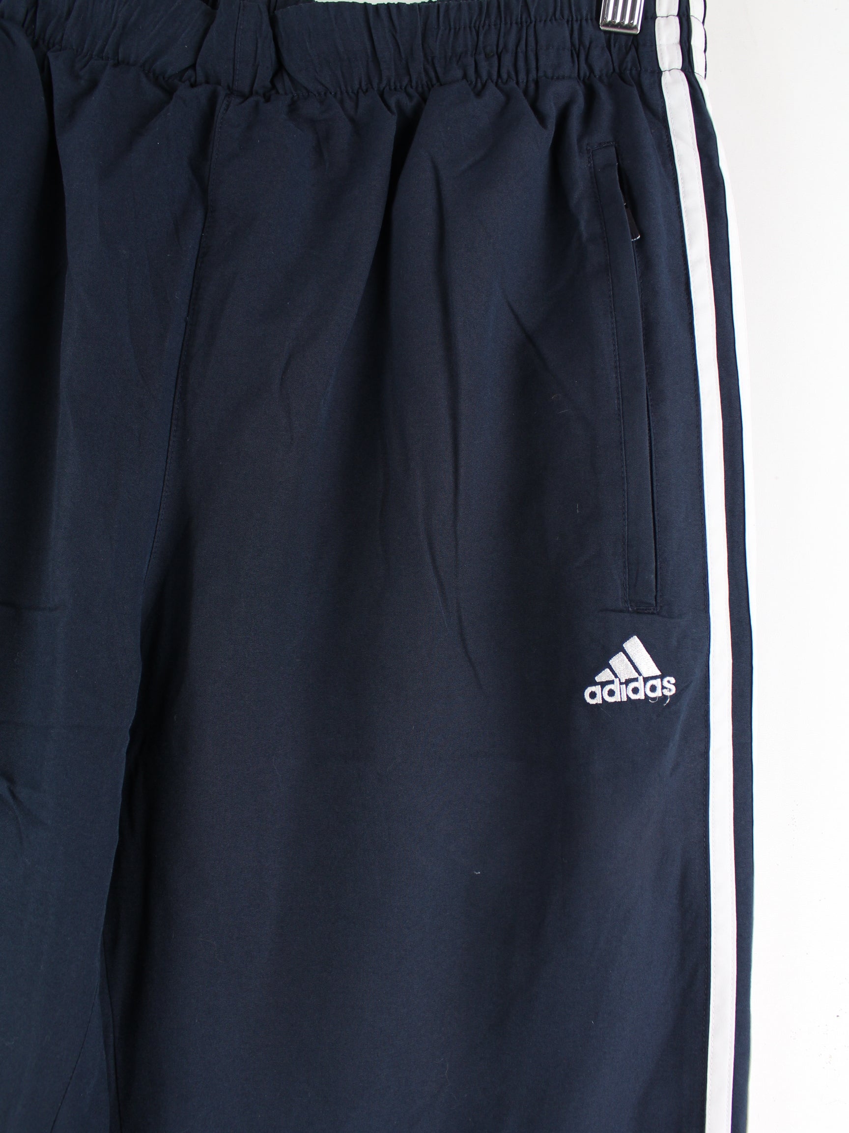 Blaue Track Pants von Adidas in Größe M. Sie sind aus Synthetik gefertigt und in sehr gutem Zustand vorrätig.