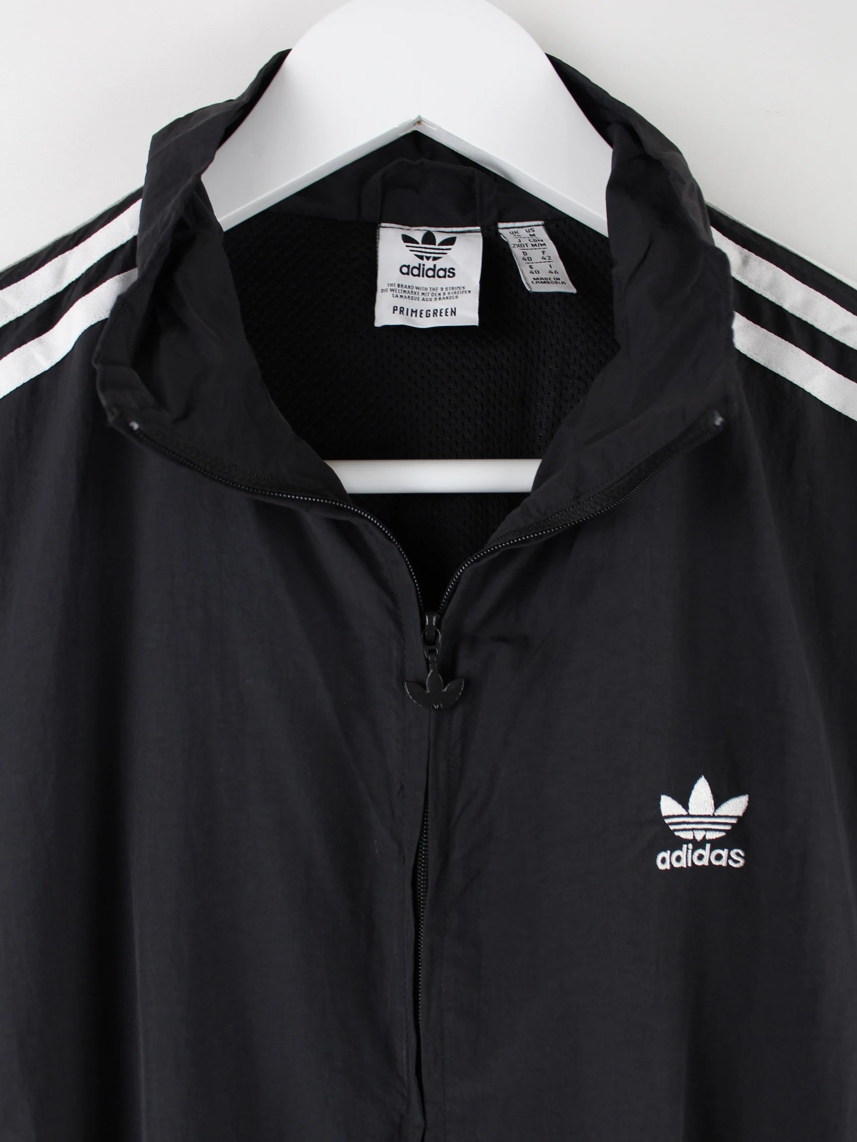 Trainingsanzug vom Label Adidas in Größe M. Er ist aus Synthetik angefertigt und in Schwarz zu haben.