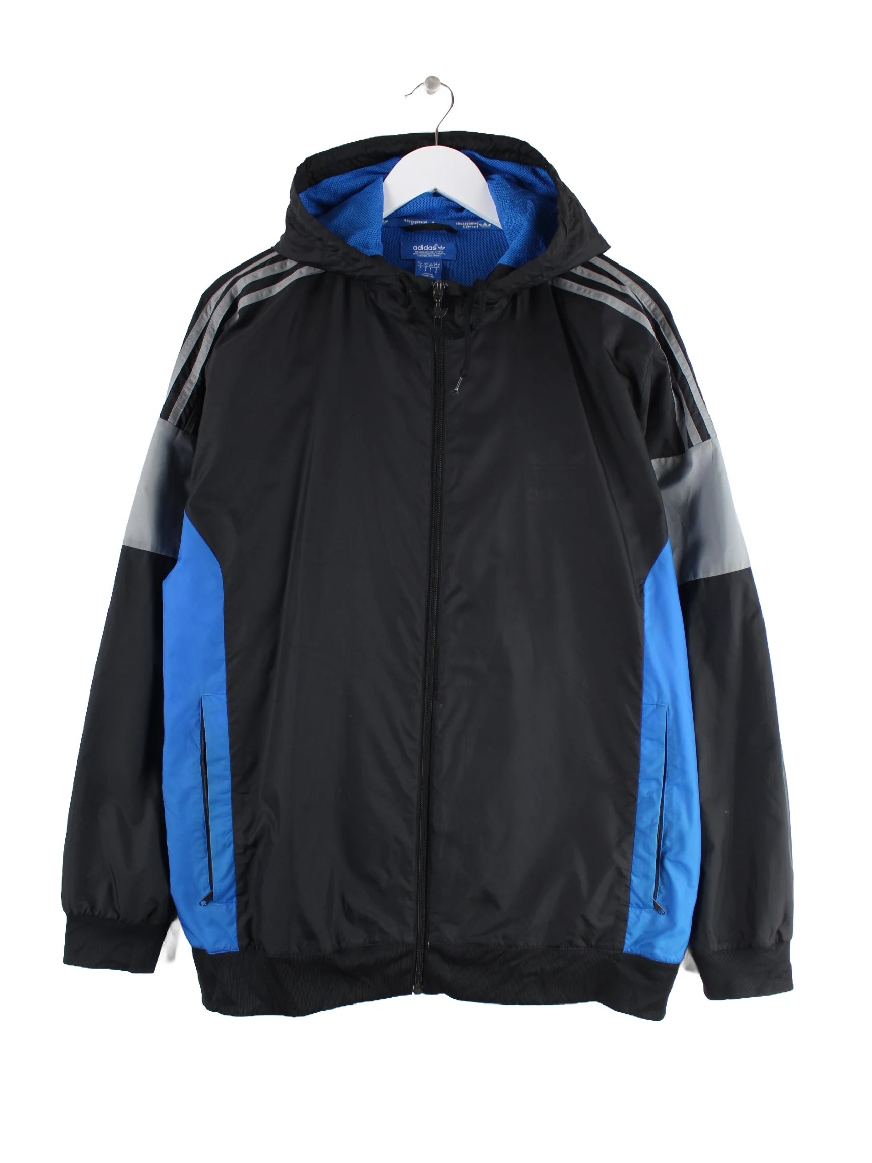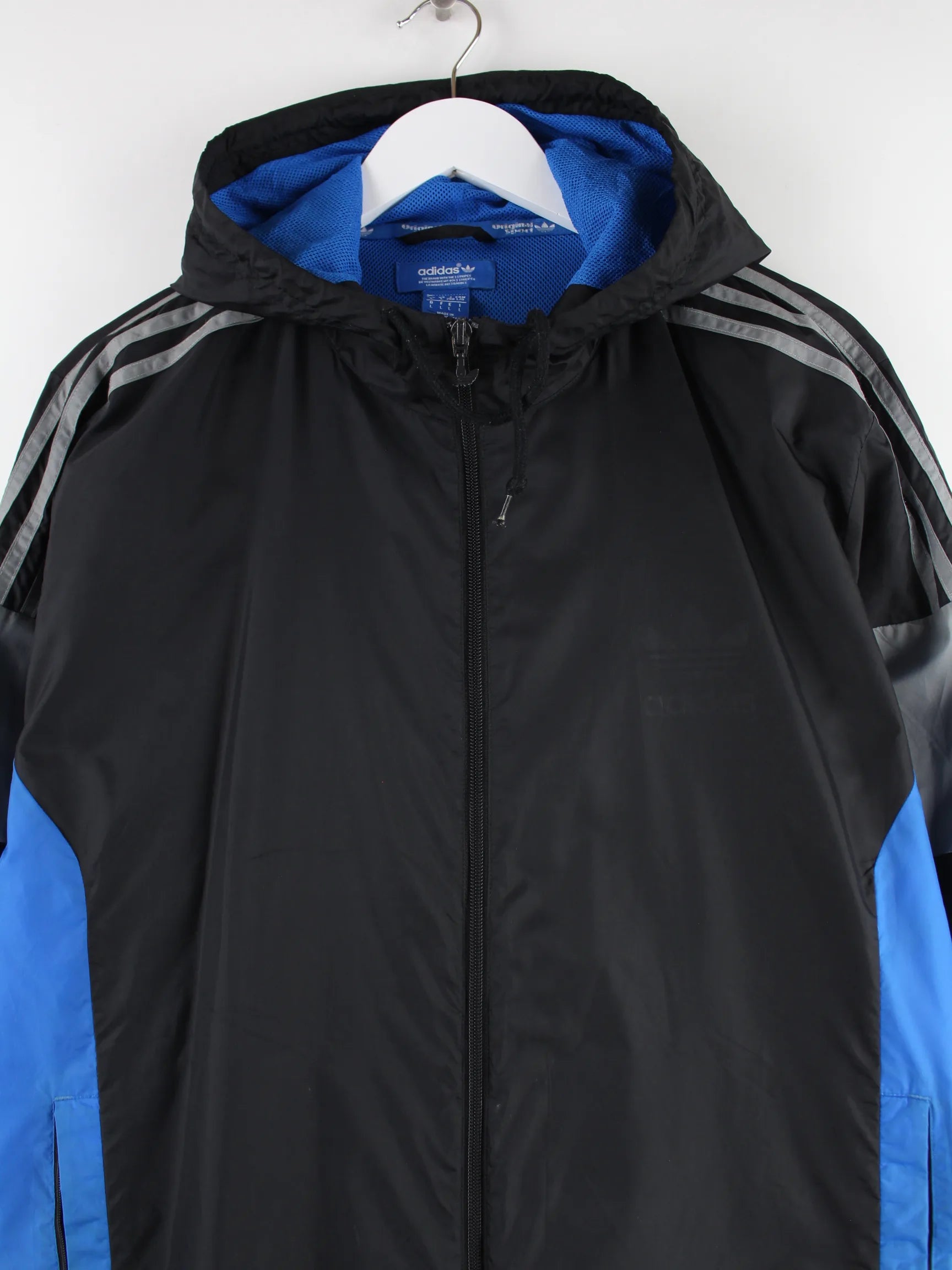 Leichte Jacke aus dem Hause Adidas in Größe L. Sie ist aus Synthetik angefertigt und in Schwarz im Bestand.