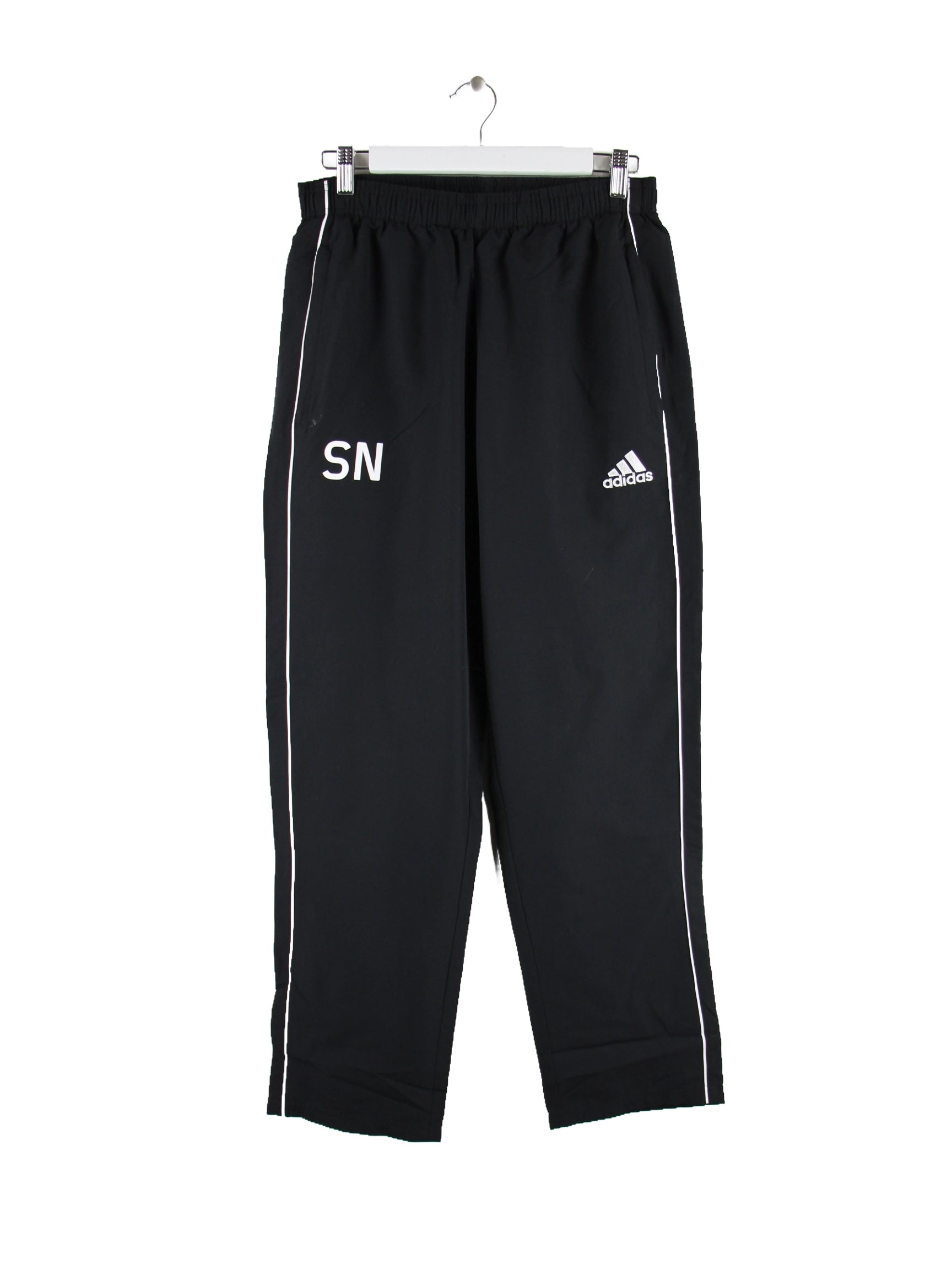 Schwarze Track Pants des Labels Adidas in Größe S. Sie sind aus Synthetik angefertigt und in gutem Zustand auf Lager.