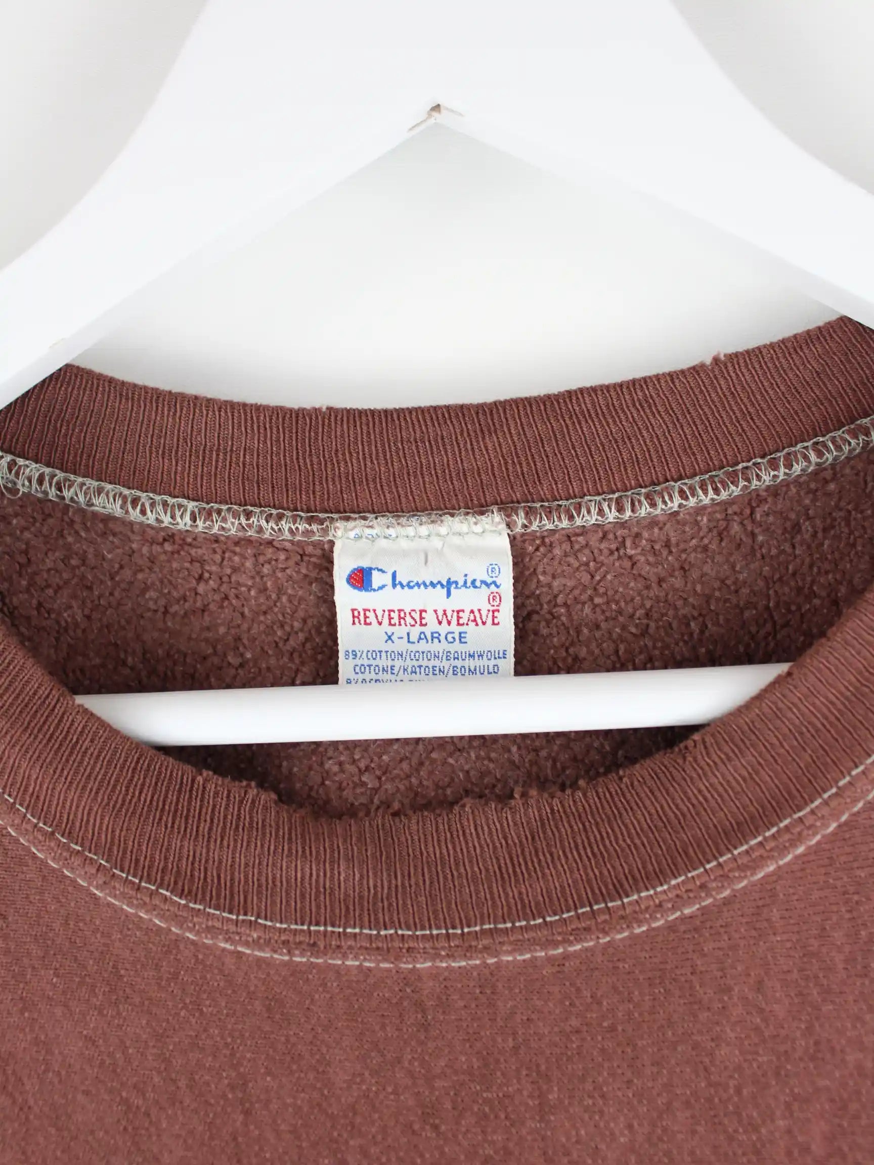 Sweater von Champion in Größe XL aus den 90'ern. Er ist aus einer Baumwollmischung gemacht und in Braun lieferbar. Mit schickem University Print.