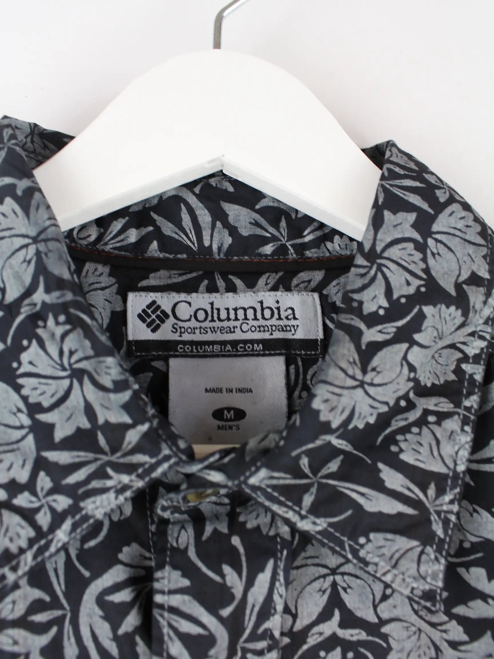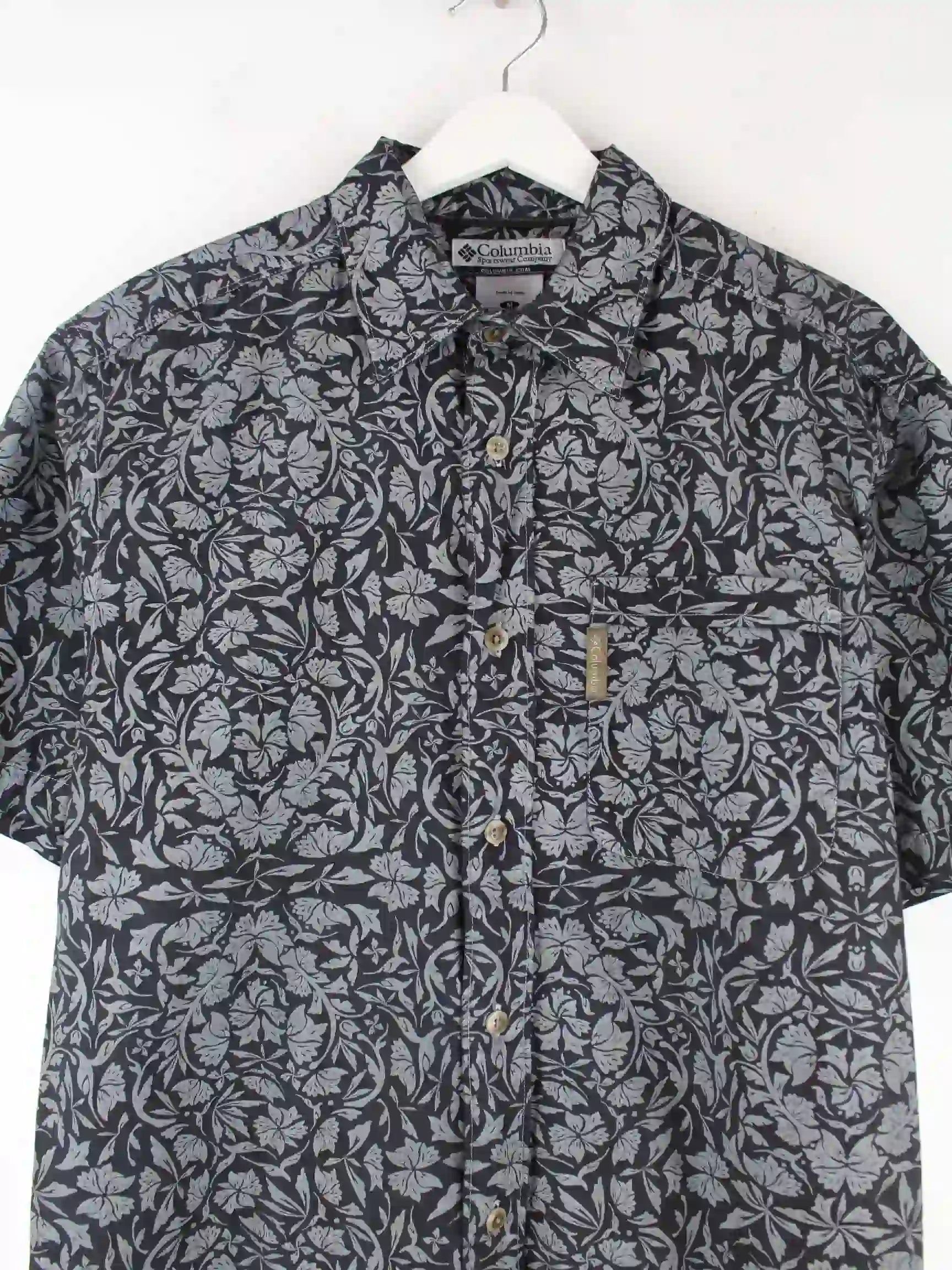 Columbia 00s Flower Pattern Kurzarm Hemd Schwarz M