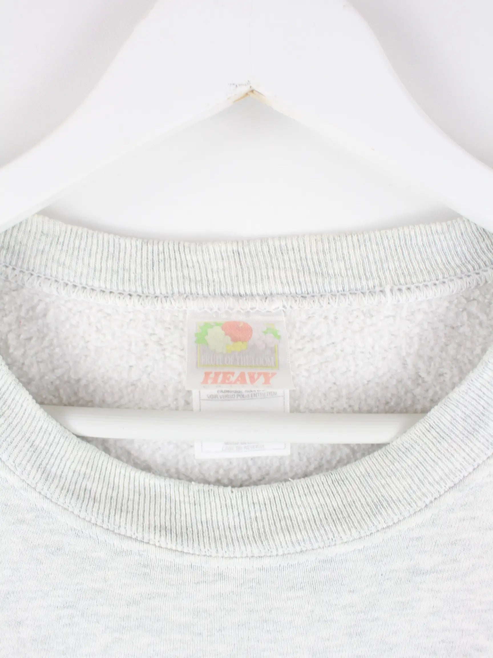 Sweater der Brand Fruit of the Loom in Größe XL aus den 90'ern. Er ist aus einer Baumwollmischung produziert und in Grau im Bestand.