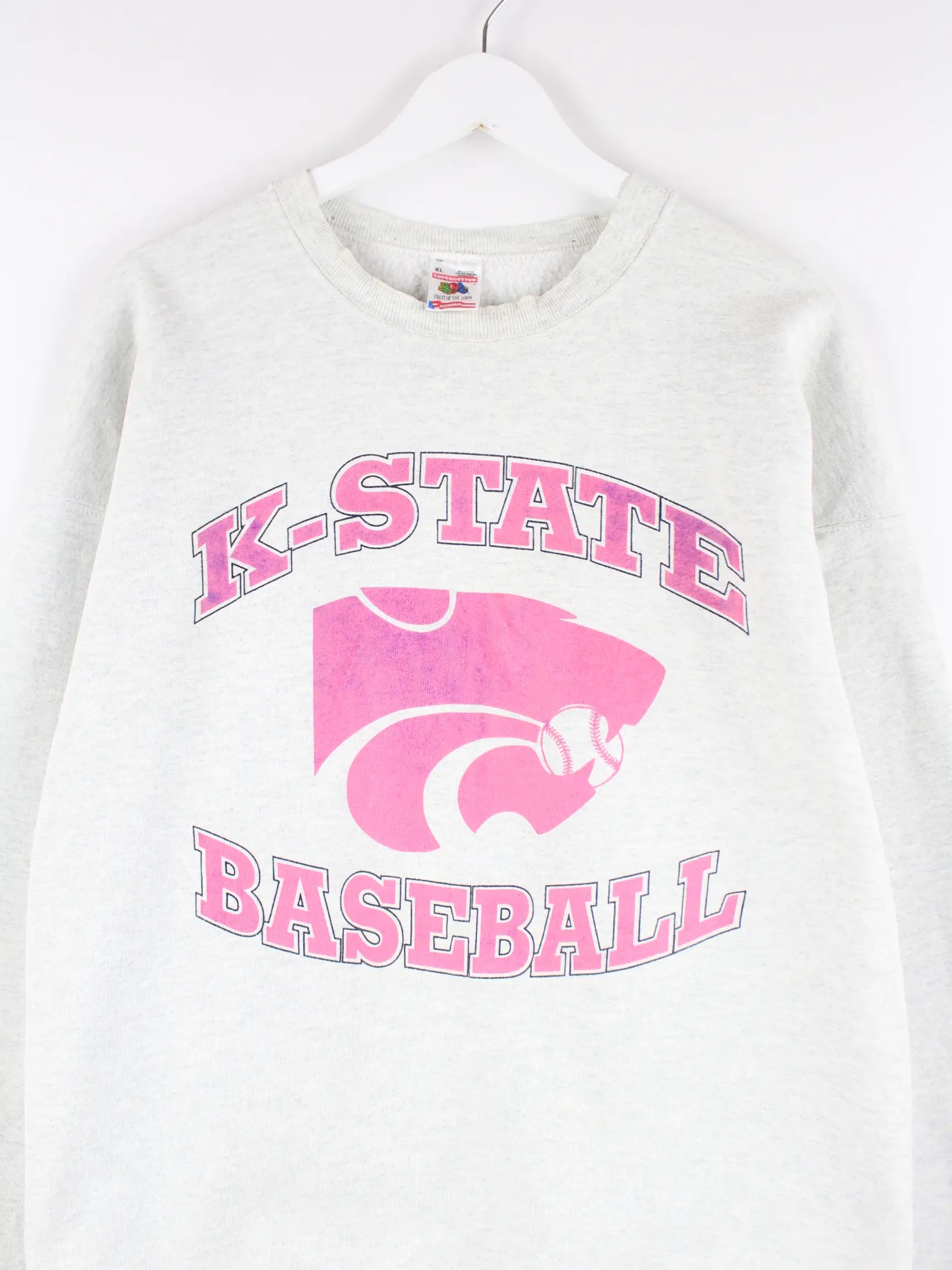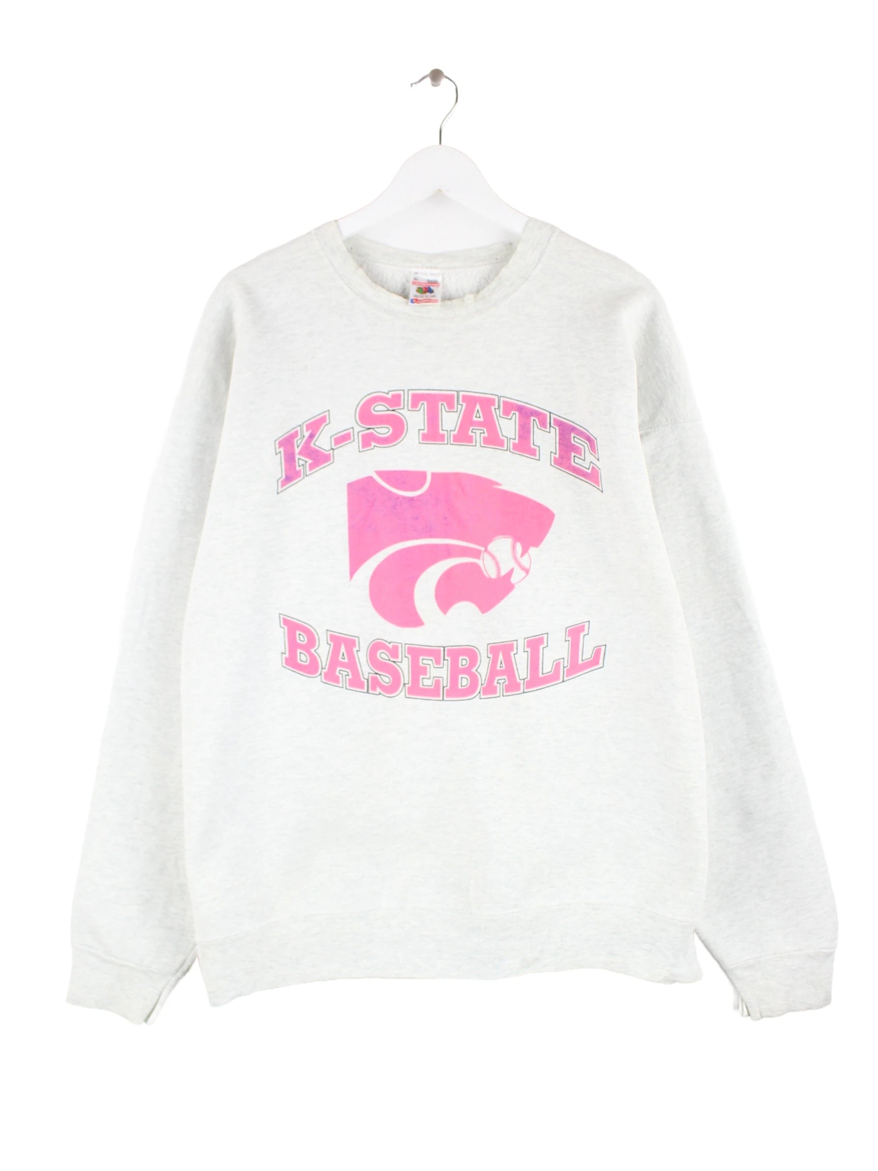 Fruit of the Loom 90s Vintage K-State Baseball Heavy Sweater Grau XL