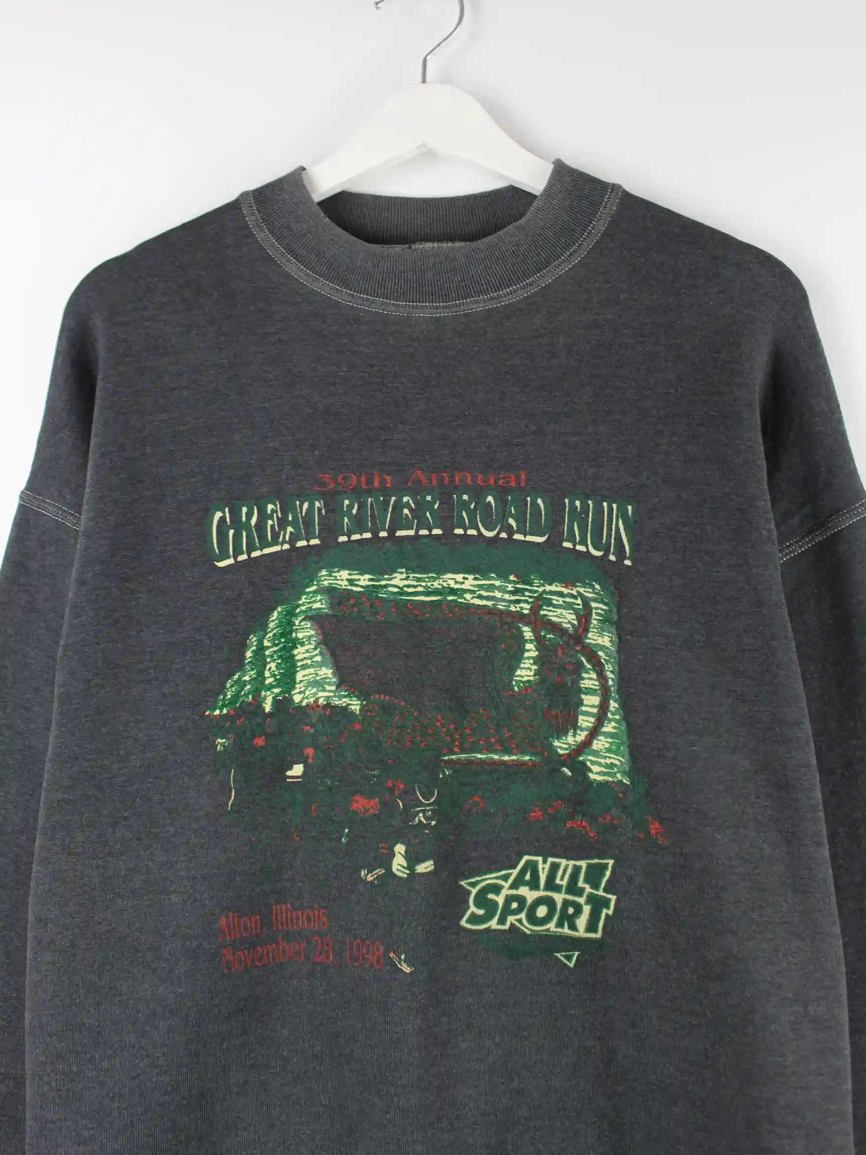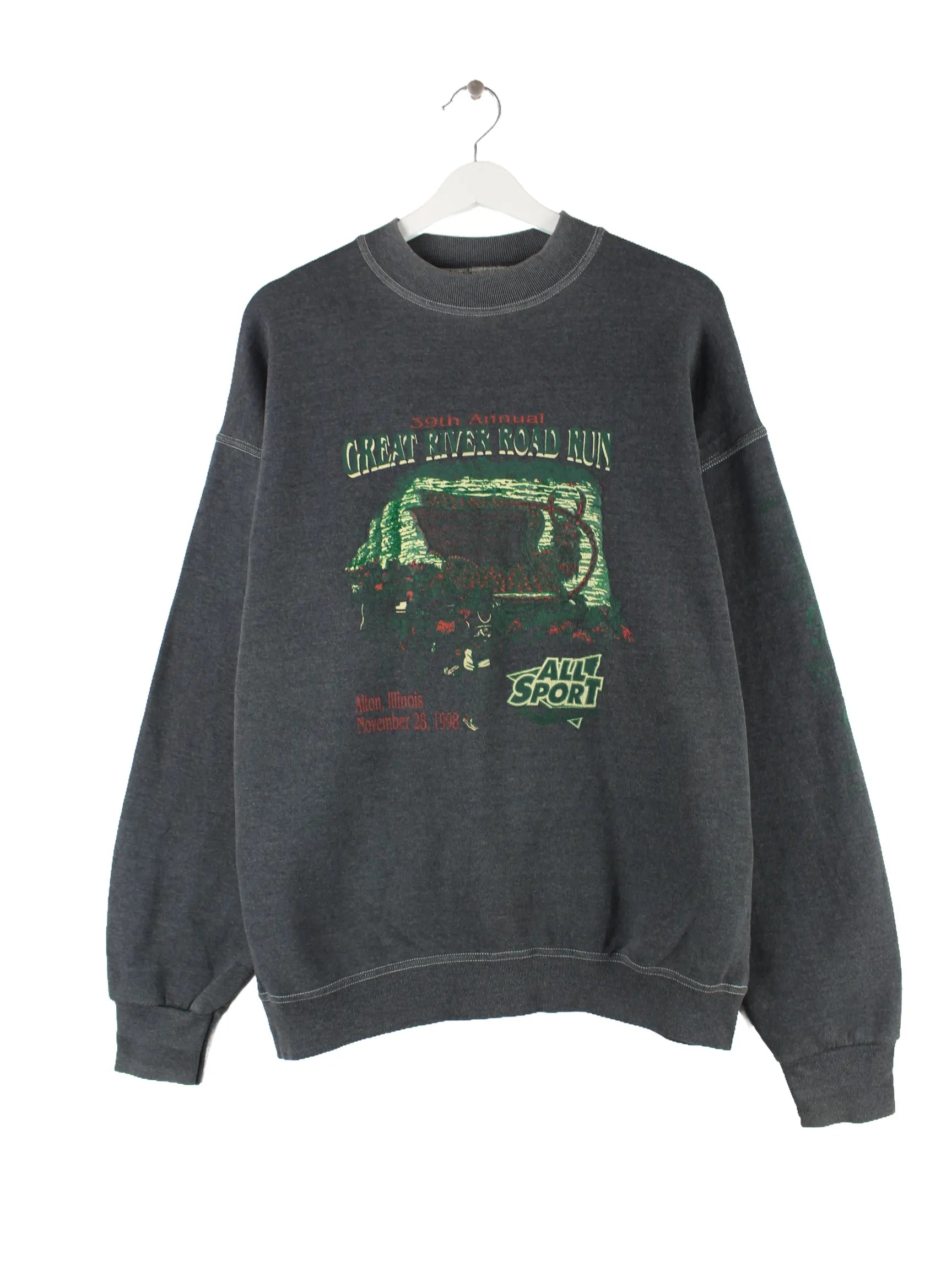 Fruit of the Loom 90s Vintage River Run Print Sweater Grau L