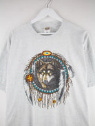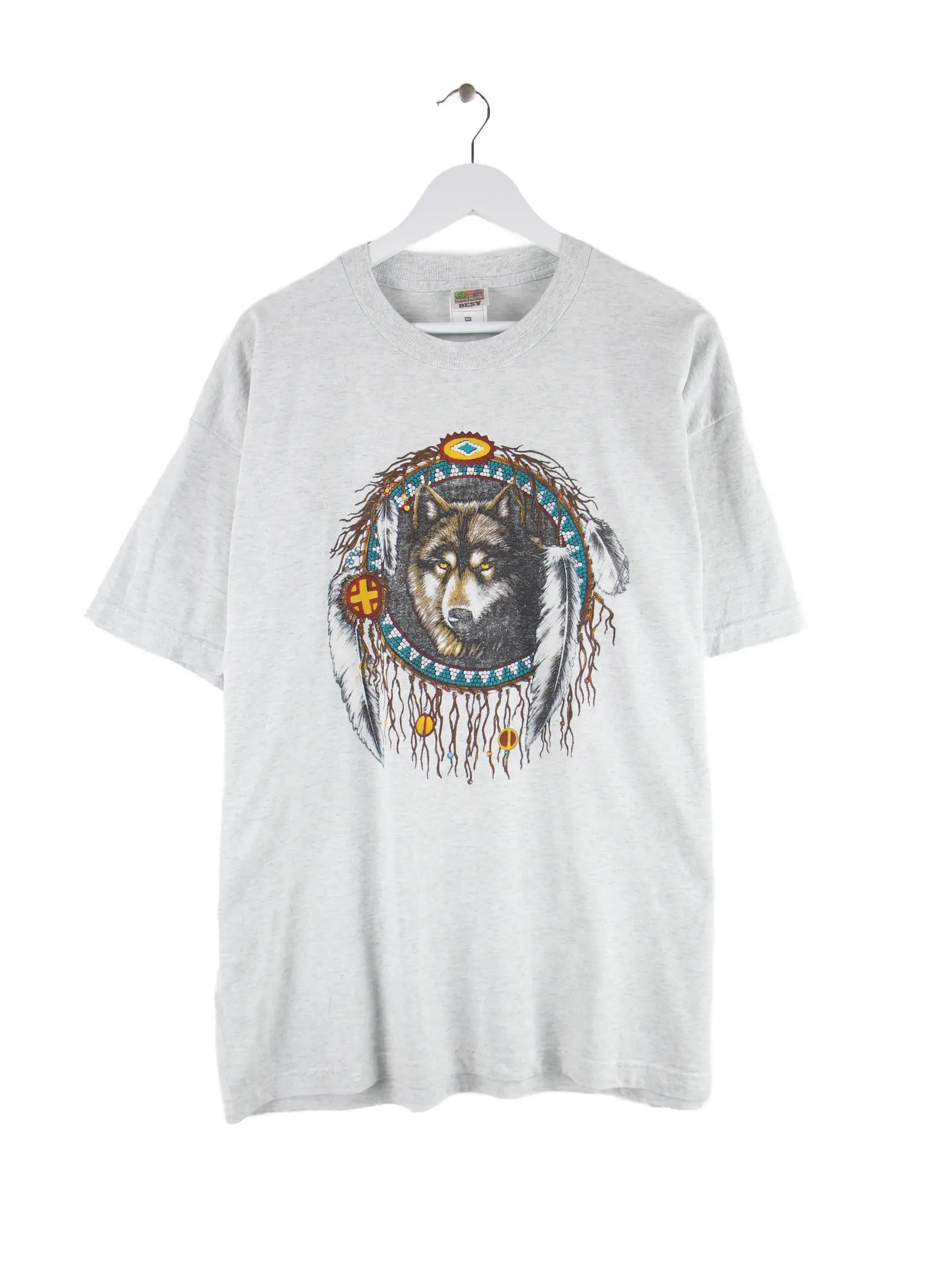 Fruit of the Loom 90s Vintage Wolf Print T-Shirt Grau XXL