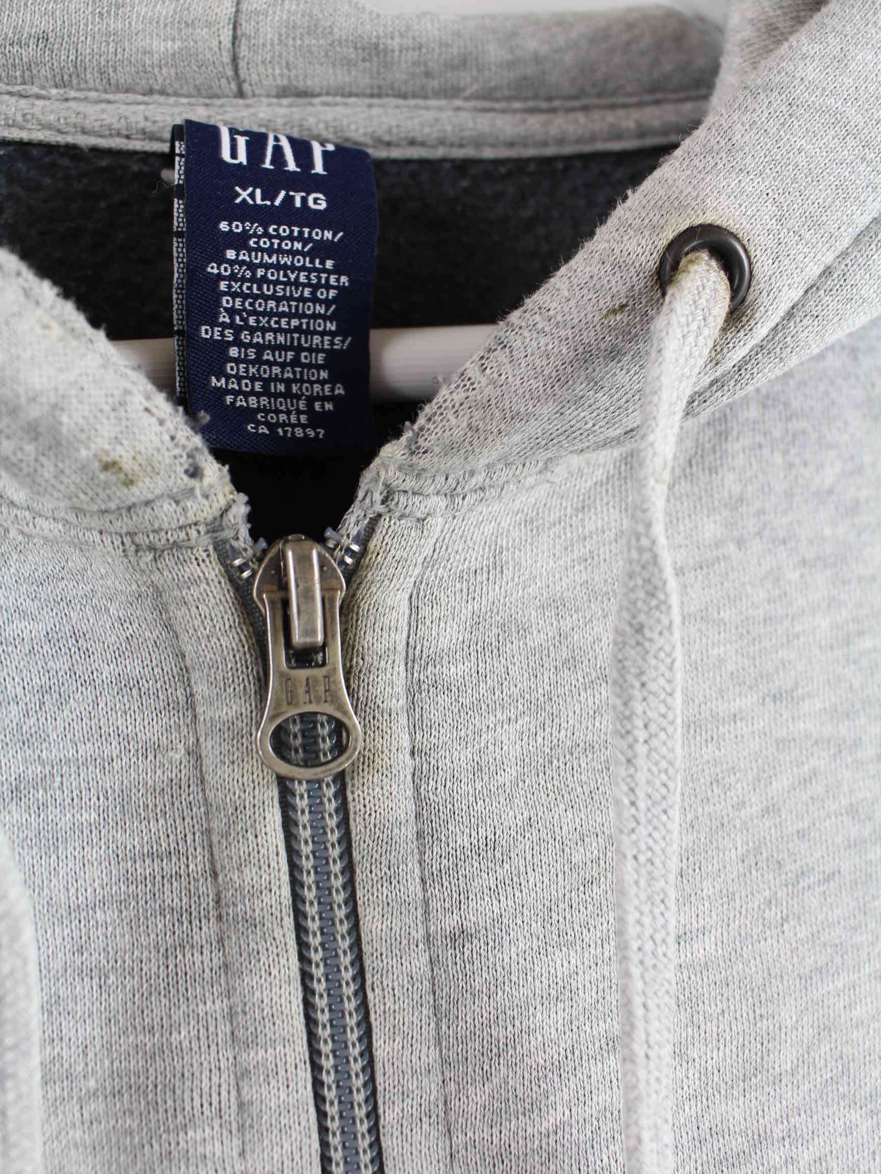 Hoodie der Marke GAP mit Stickereien und langem Reißverschluß in Größe XL. Er ist aus einer Baumwollmischung und in Grau auf Lager.