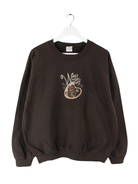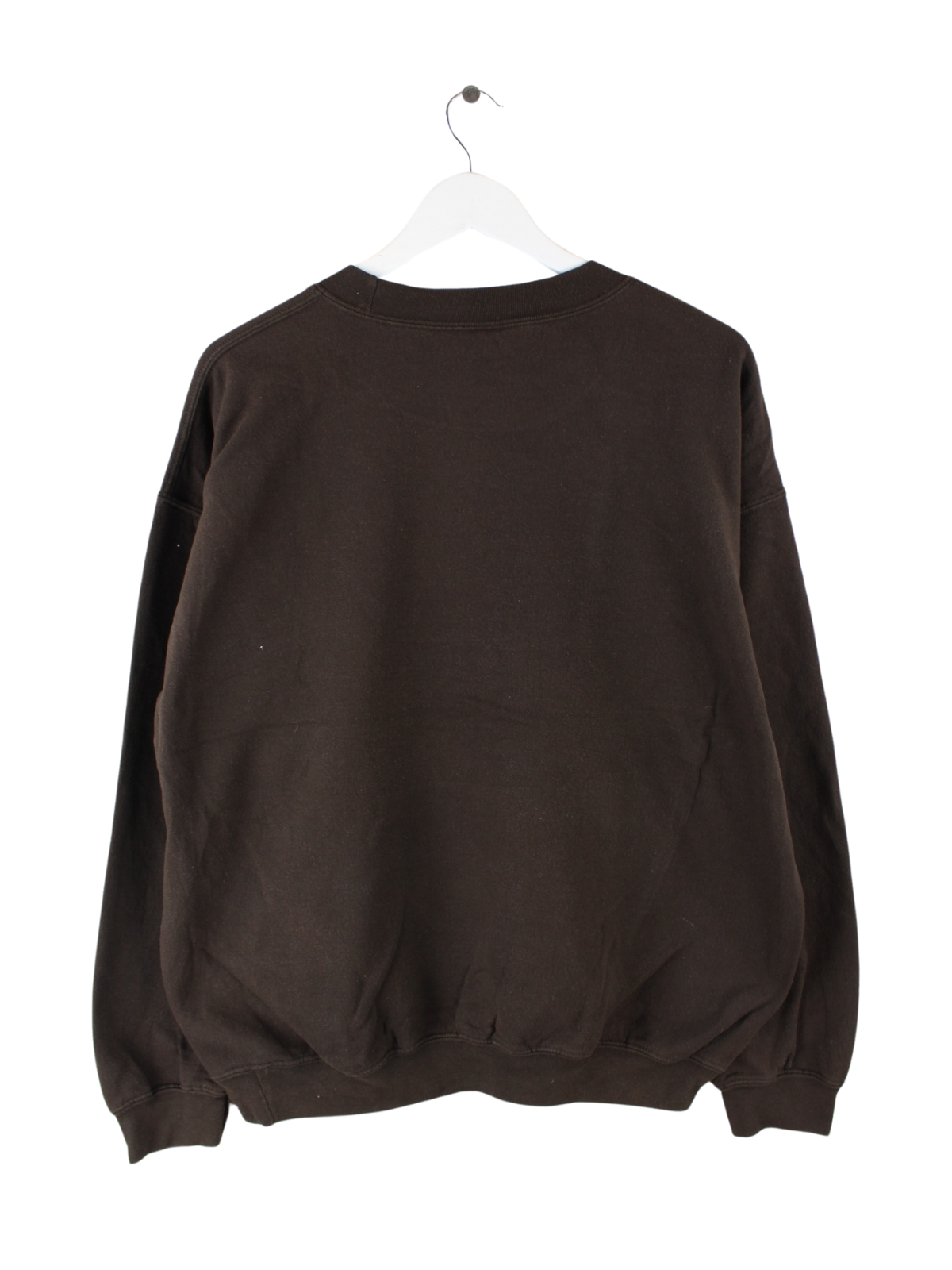 Sweater aus dem Hause Gildan mit Stickereien in Größe L aus den 90'ern. Er ist aus einer Baumwollmischung gemacht und in Braun zu bekommen.